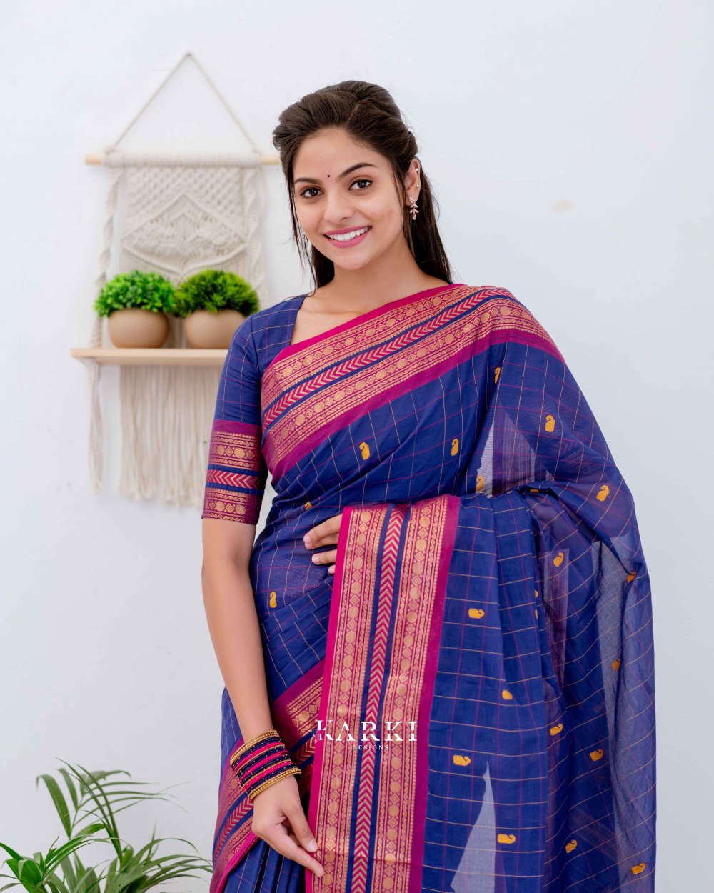 · Colour: Blue & Pink Kanchi Cotton Saree