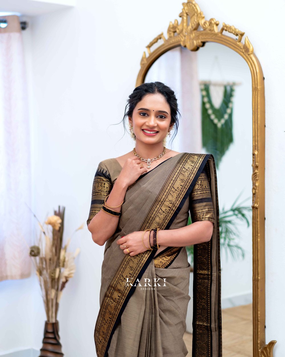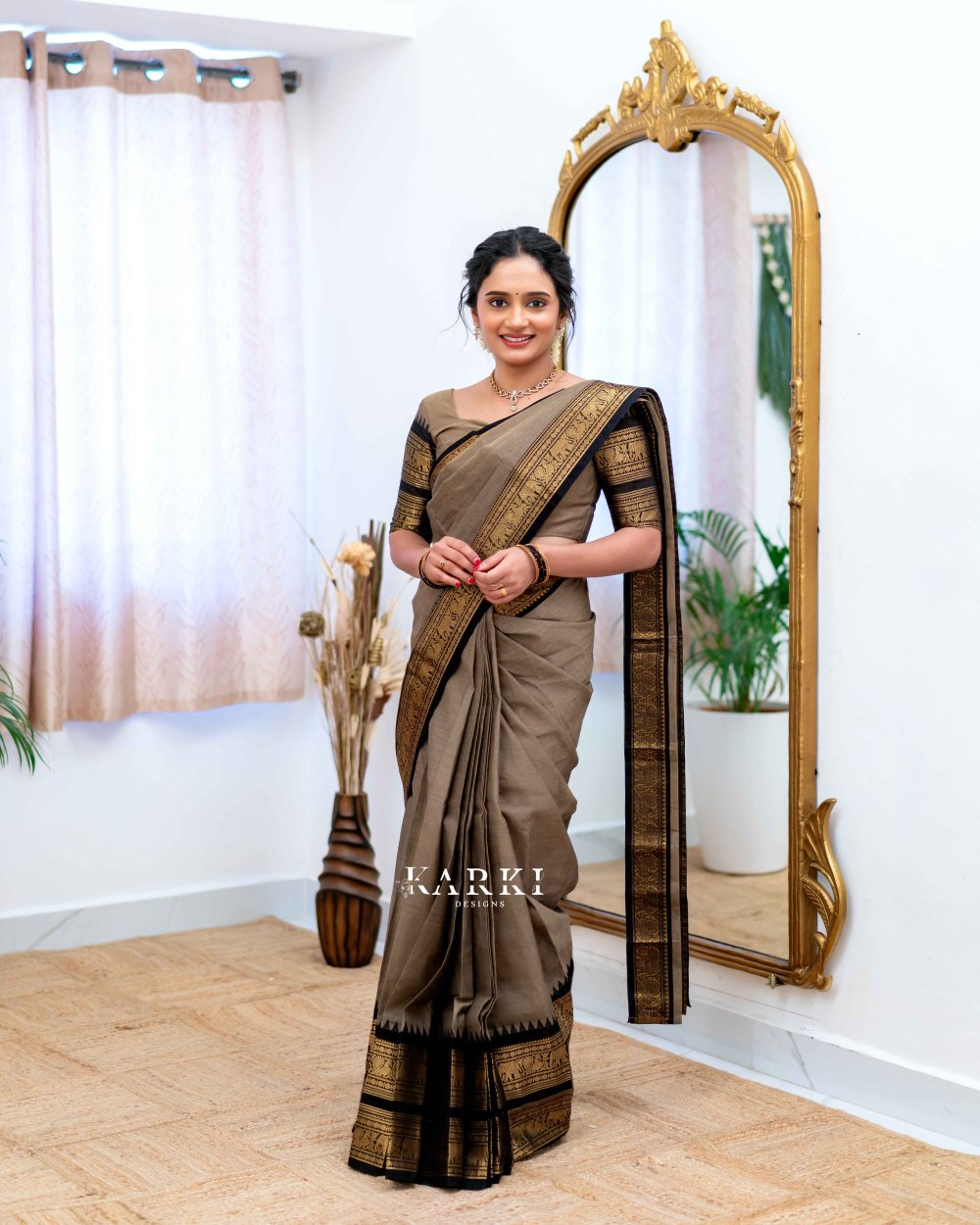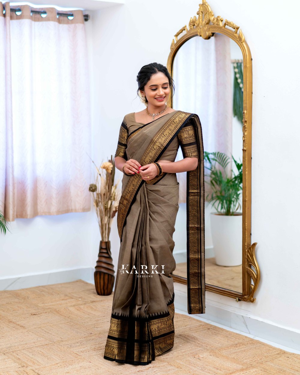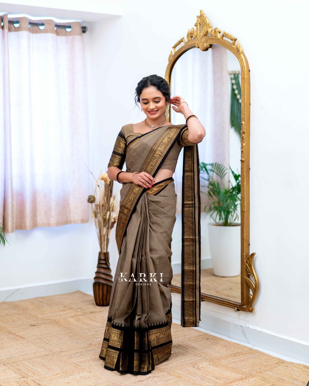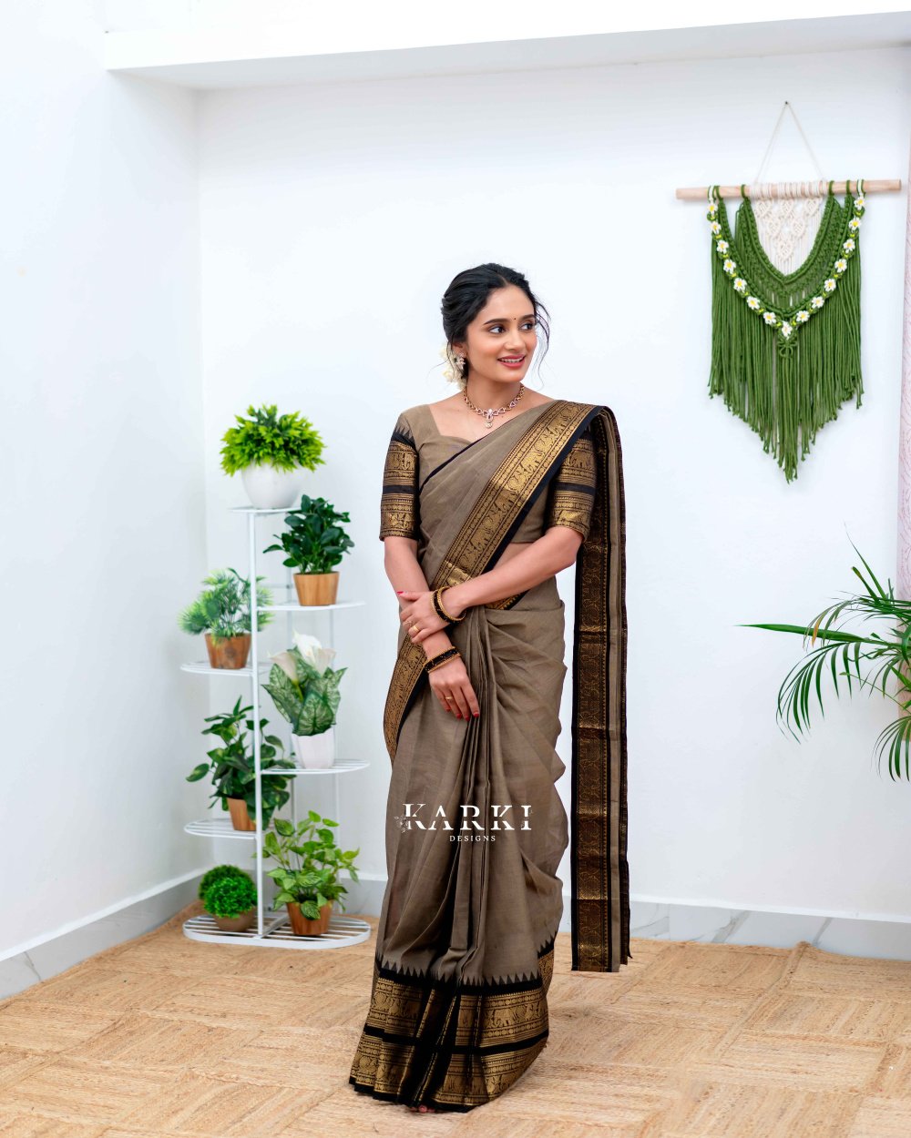 Gray & Black Kanchi Cotton Saree -SKN -22