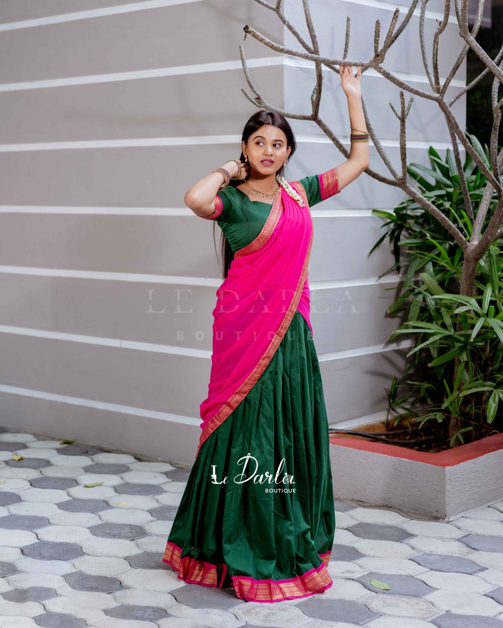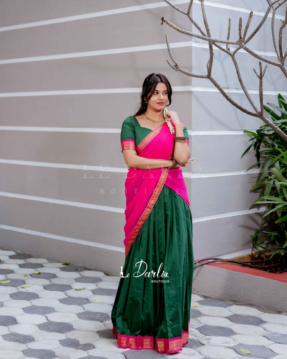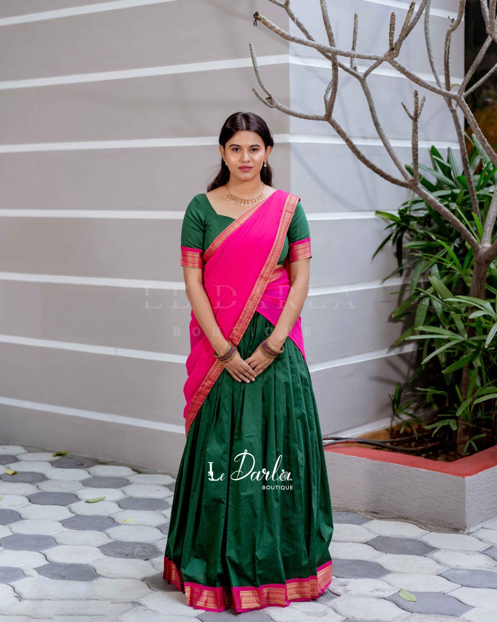 Kalyani Halfsaree - Green & pink -HSKLC -2