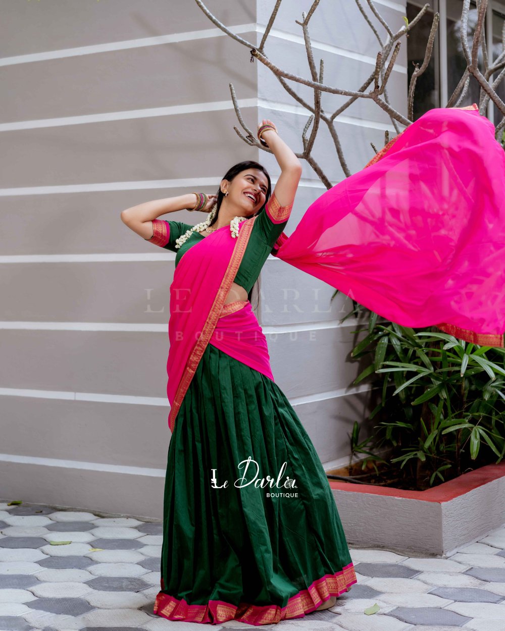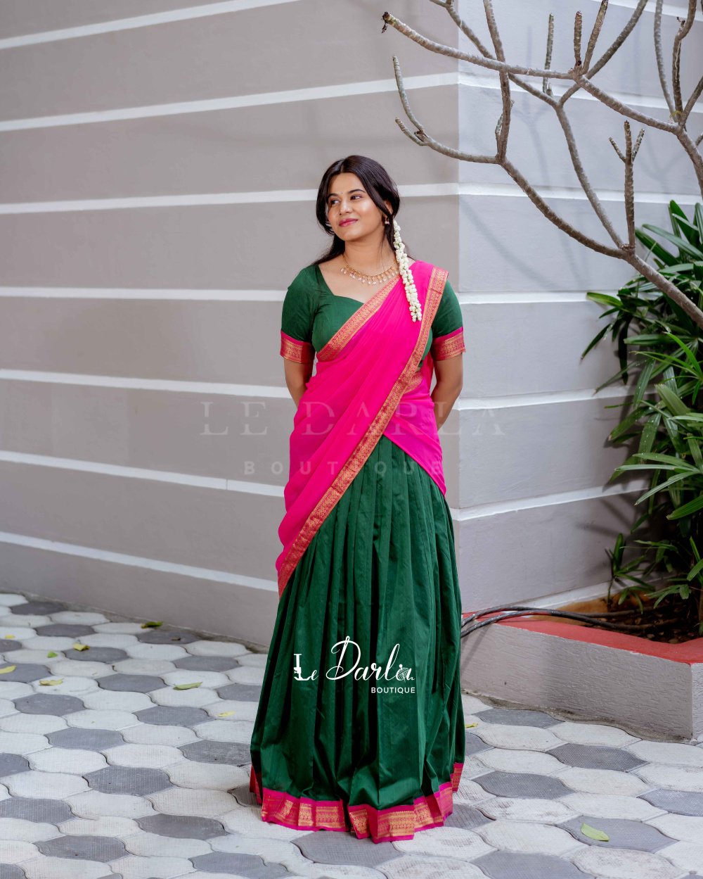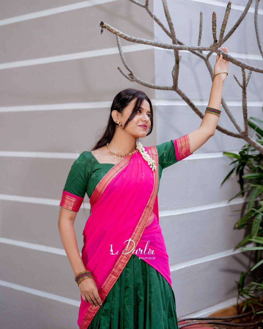 Kalyani Halfsaree - Green & pink -HSKLC -2