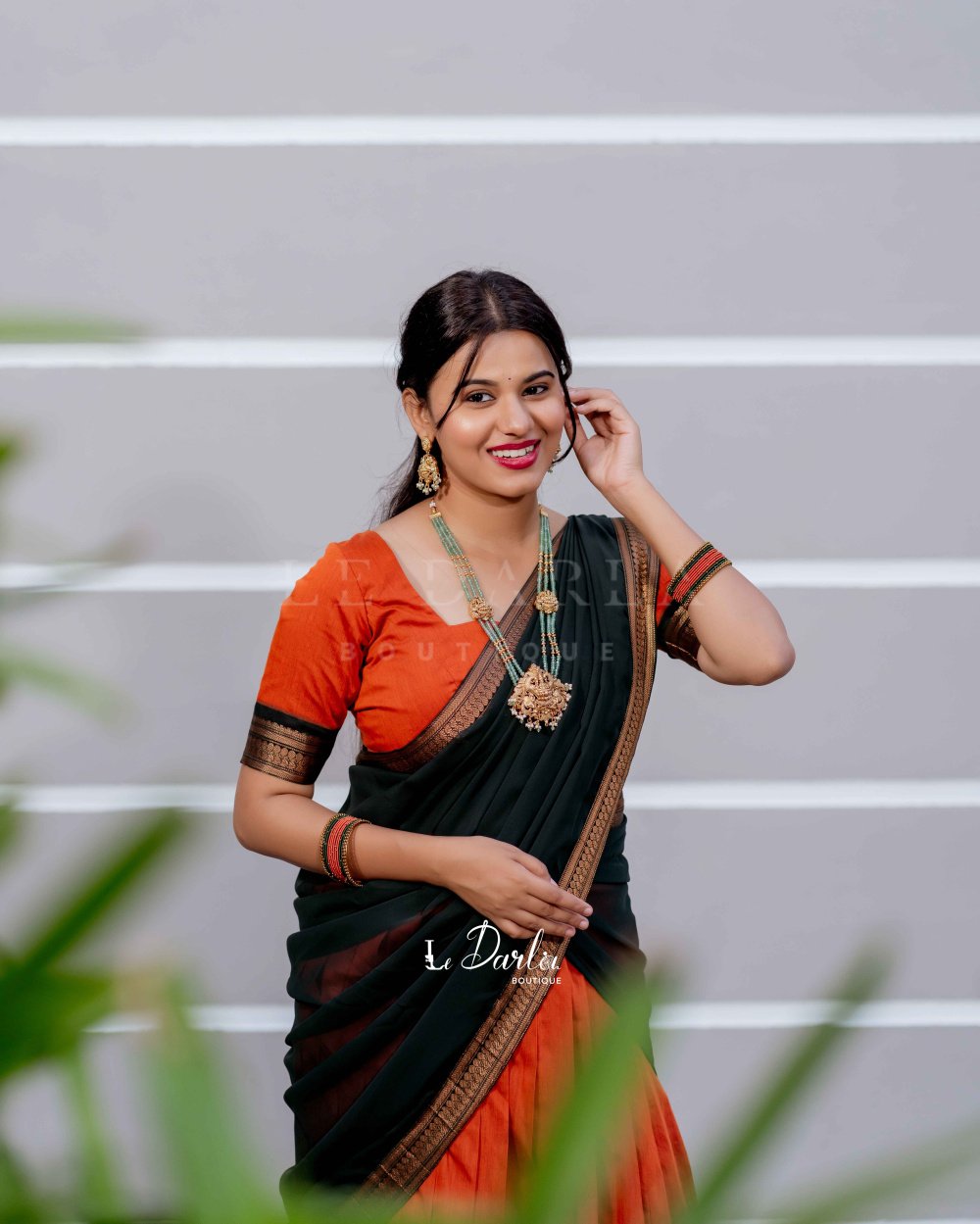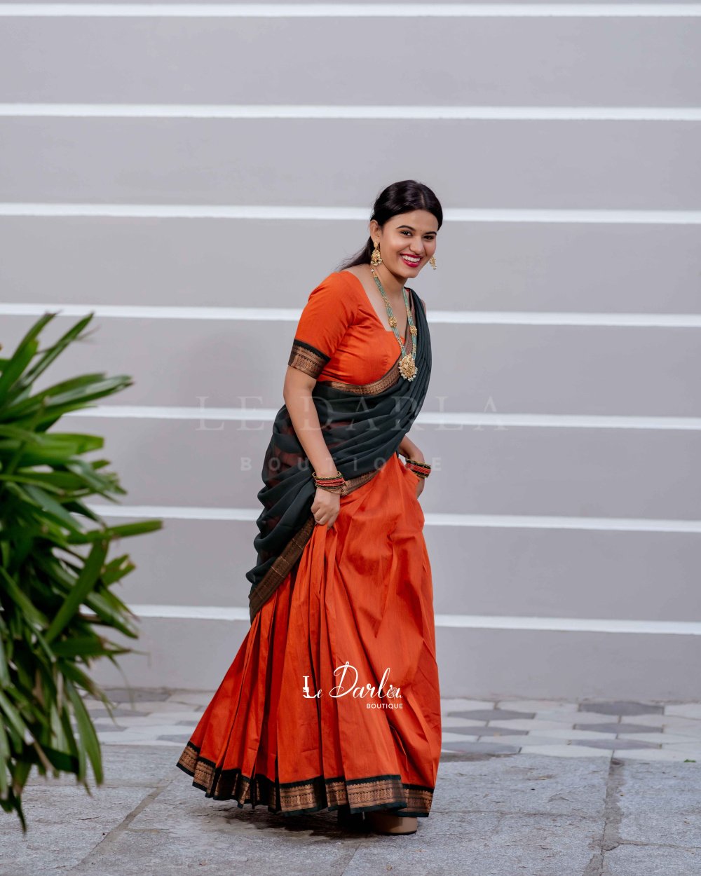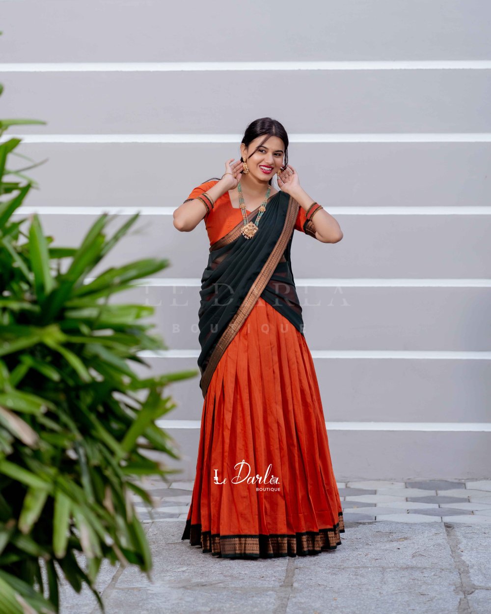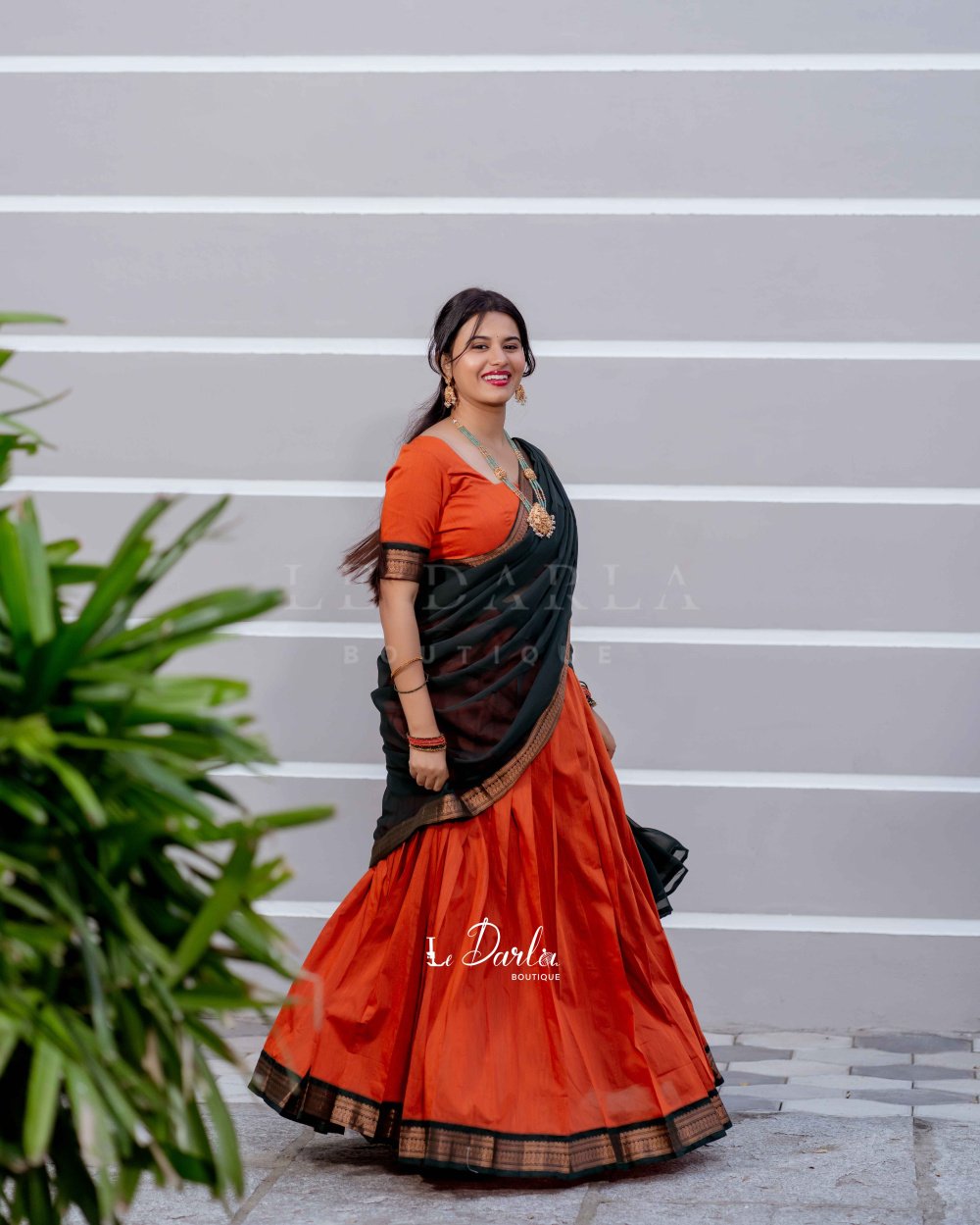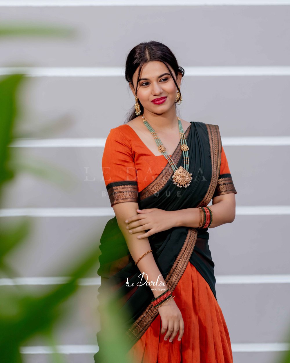 Kalyani Halfsaree - Orange & green -HSKLC -7