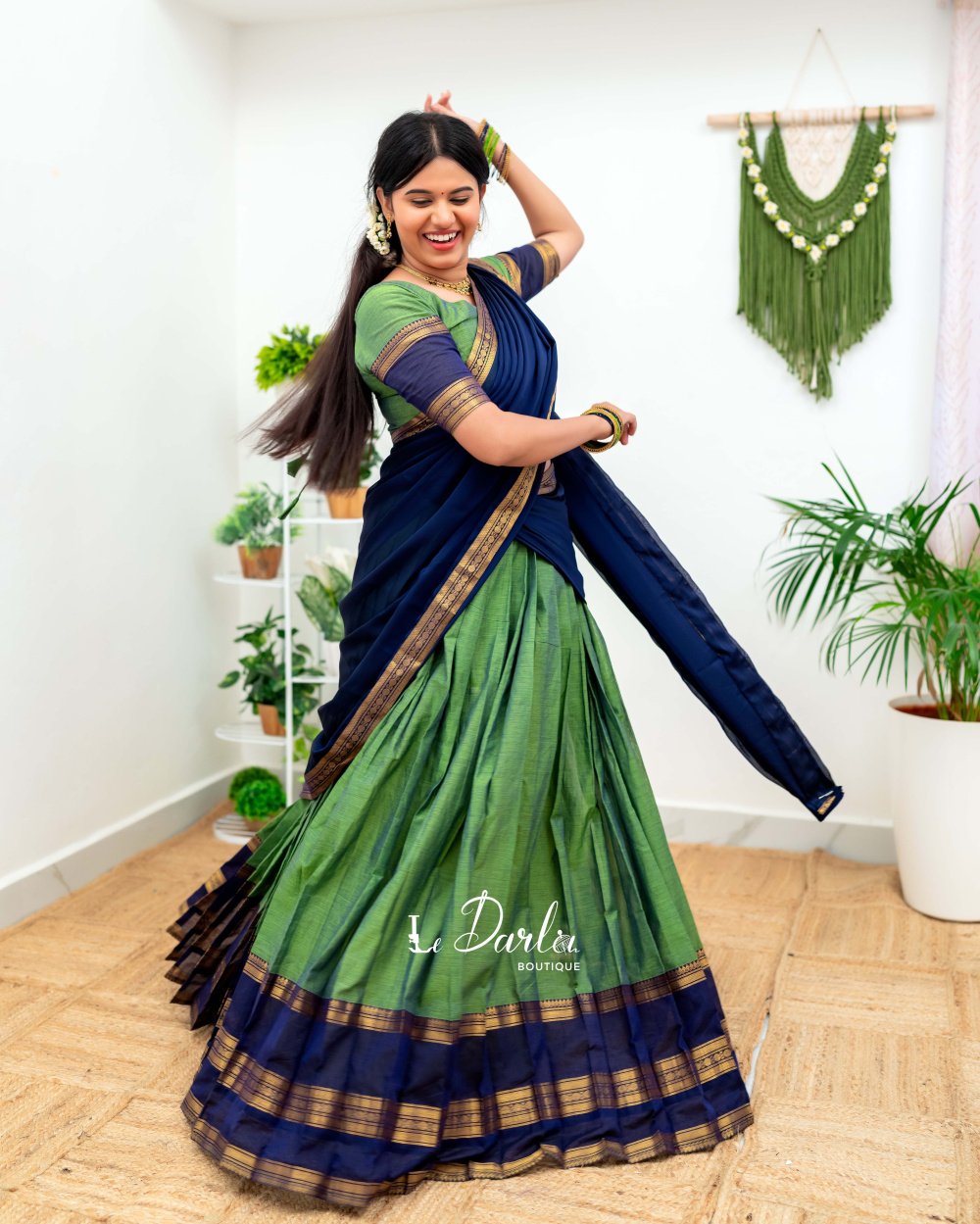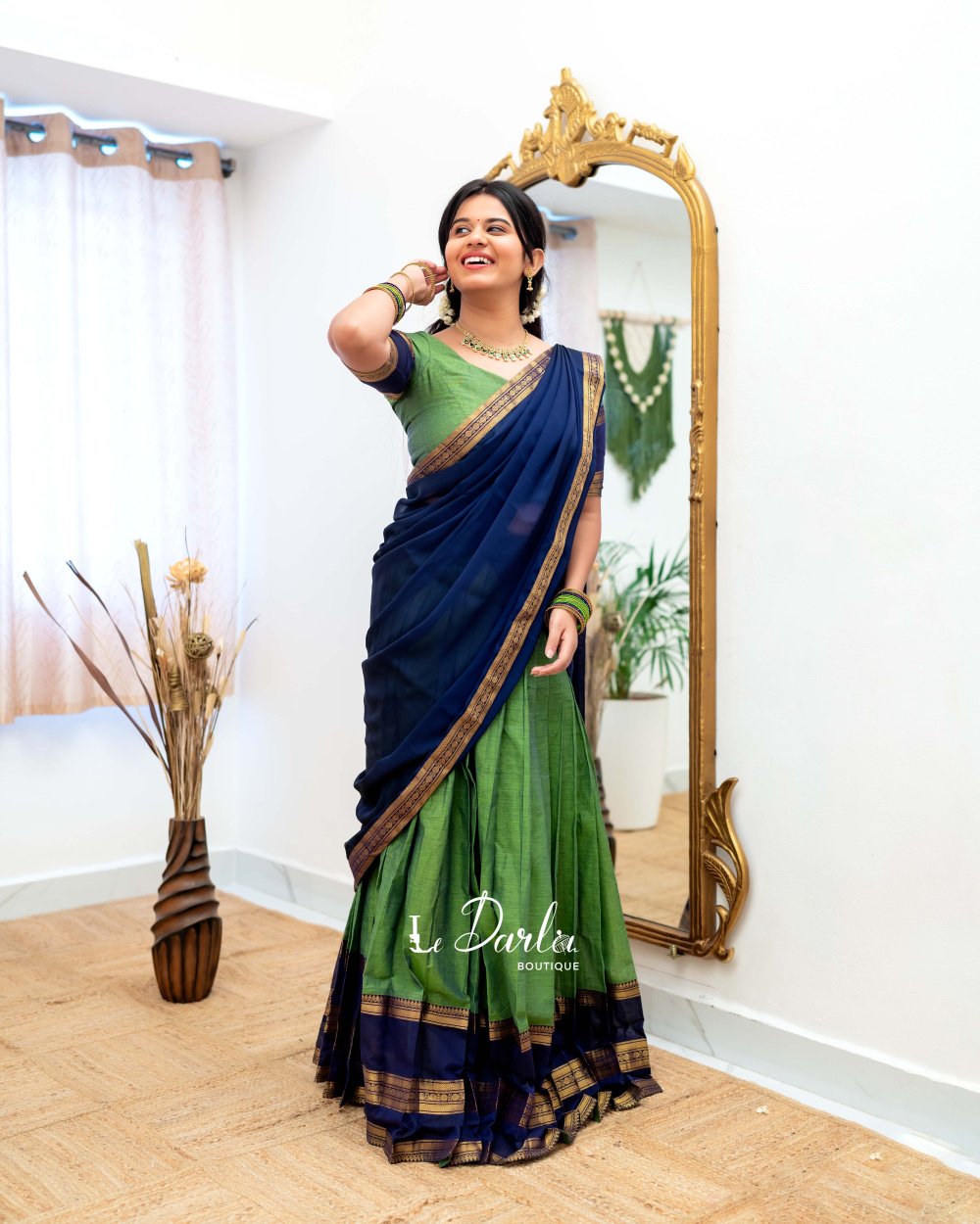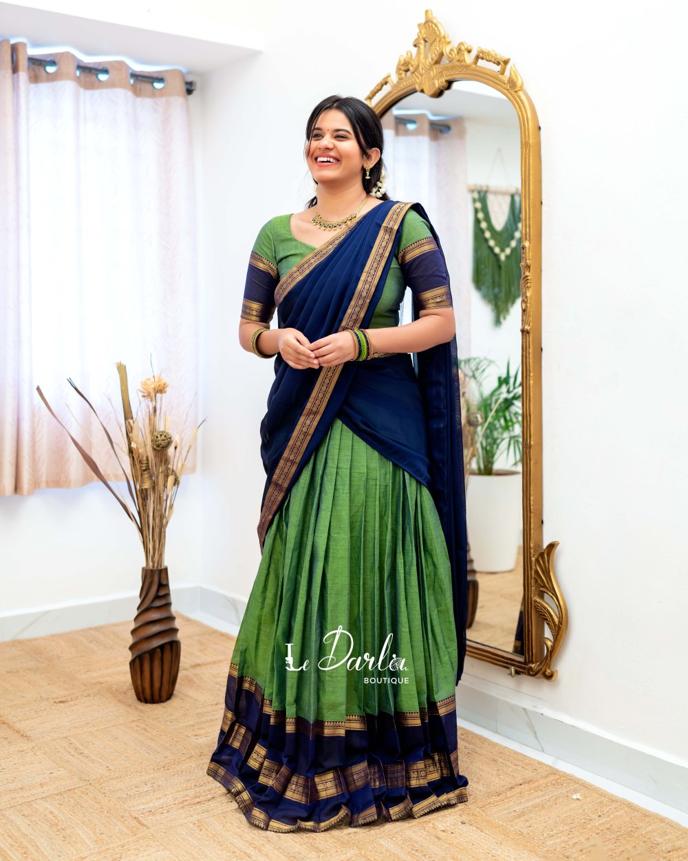Kanchi Cotton Halfsaree - Green & Navyblue - HSKN -31