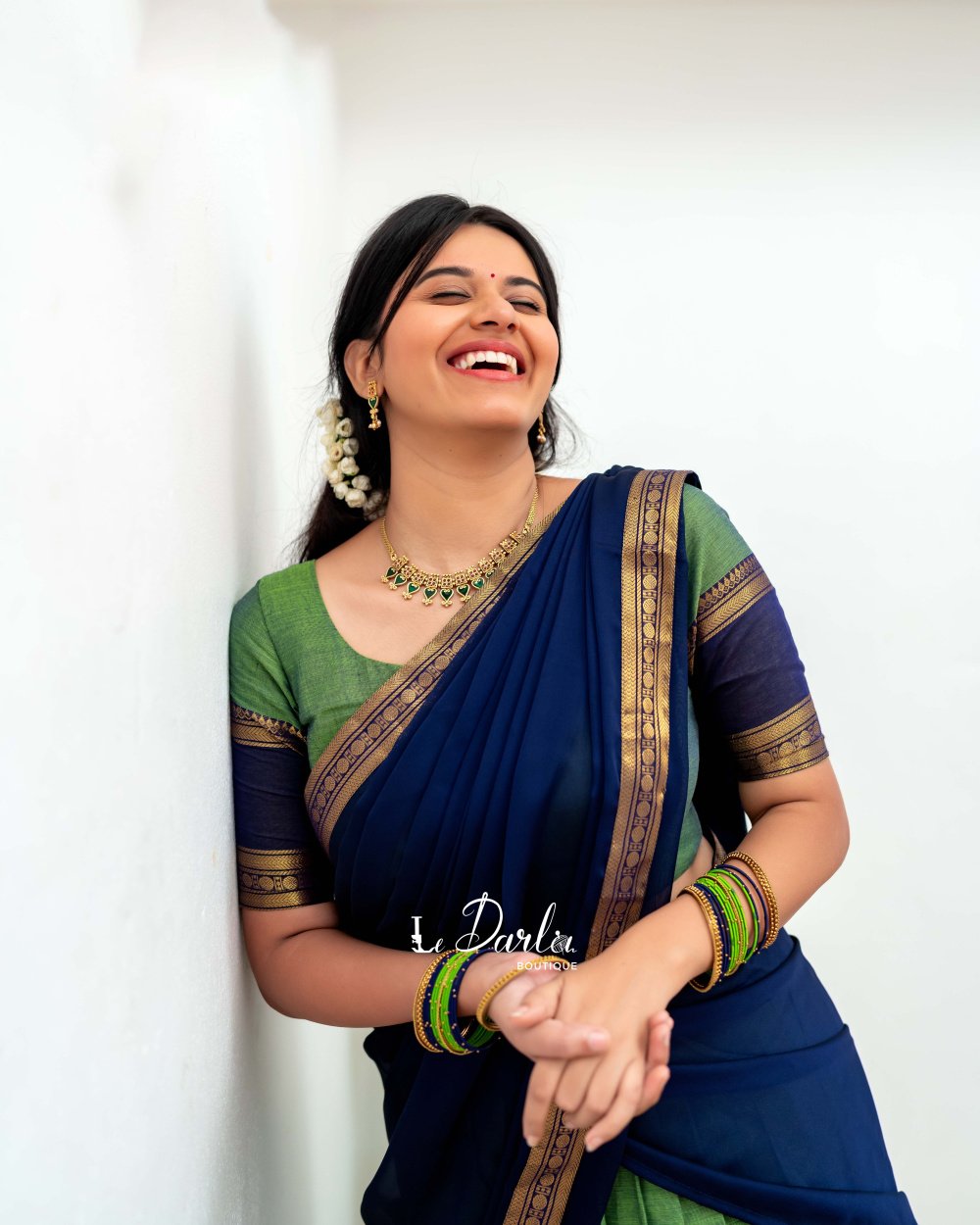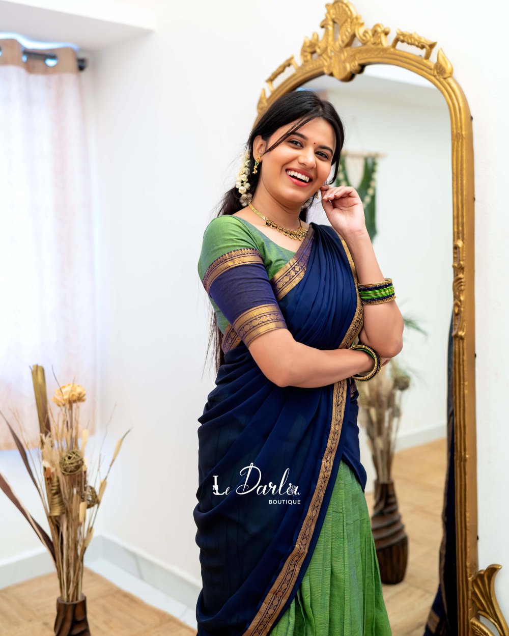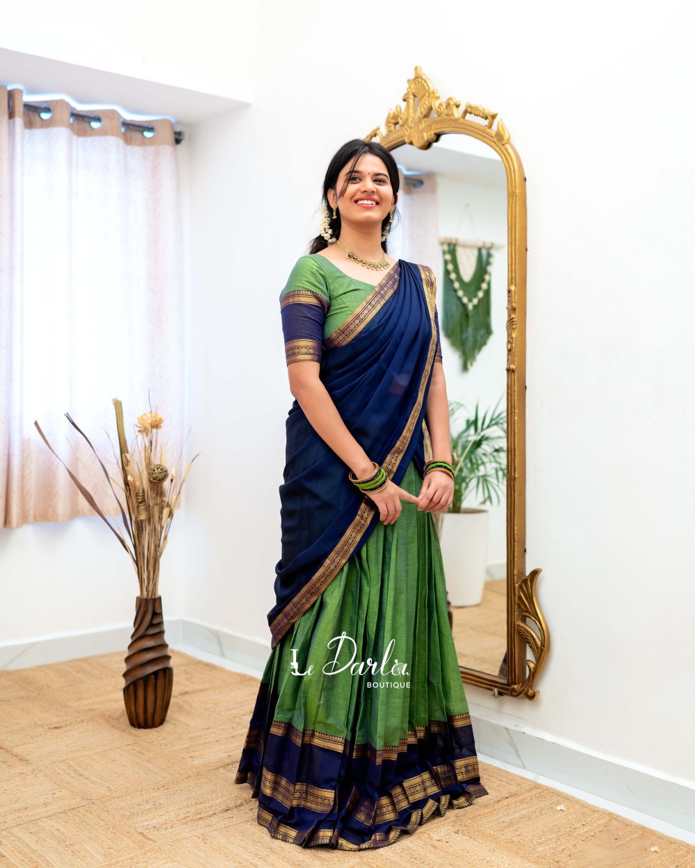 Kanchi Cotton Halfsaree - Green & Navyblue - HSKN -31