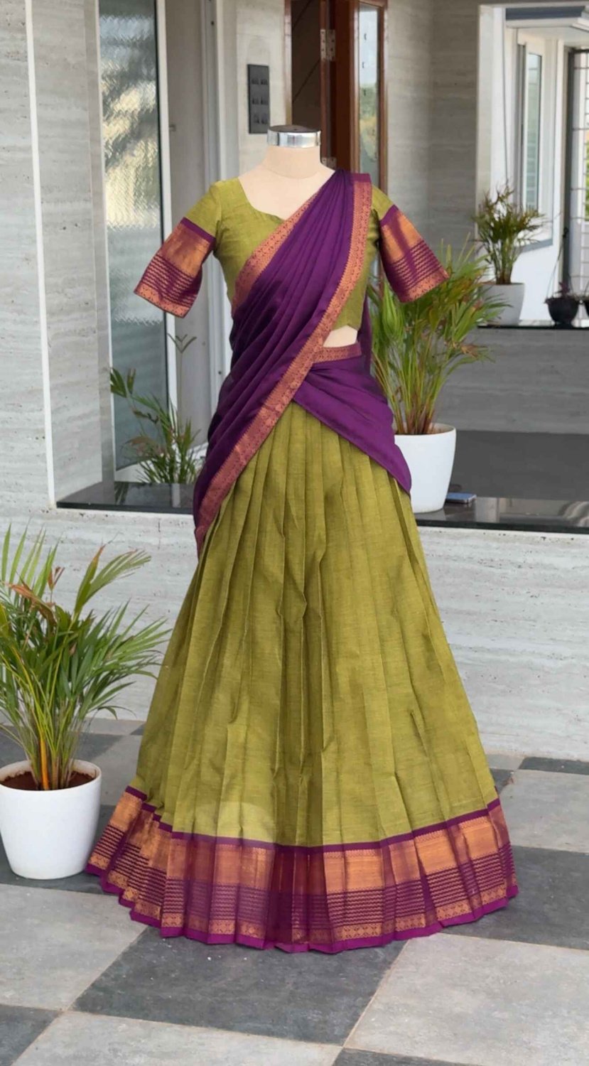 Kanchi Cotton Halfsaree - Lemongreen & Violet - HSKN -28