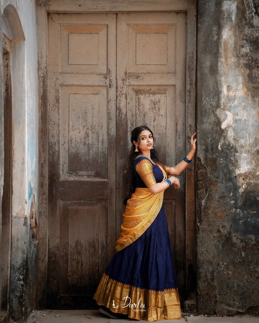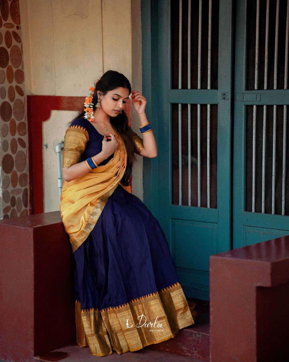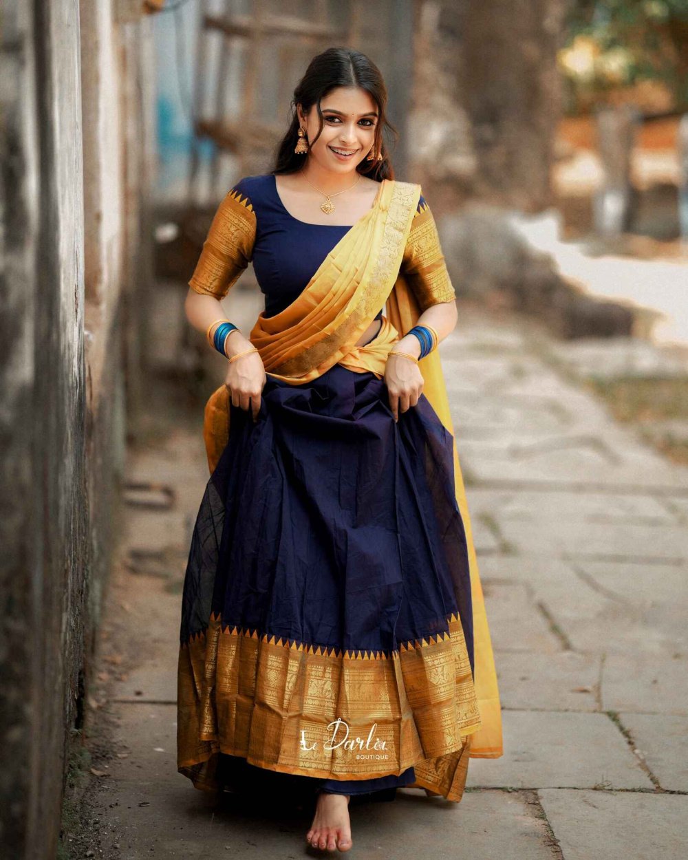 kanchi cotton Halfsaree- Navyblue & Gold-HSKN-16