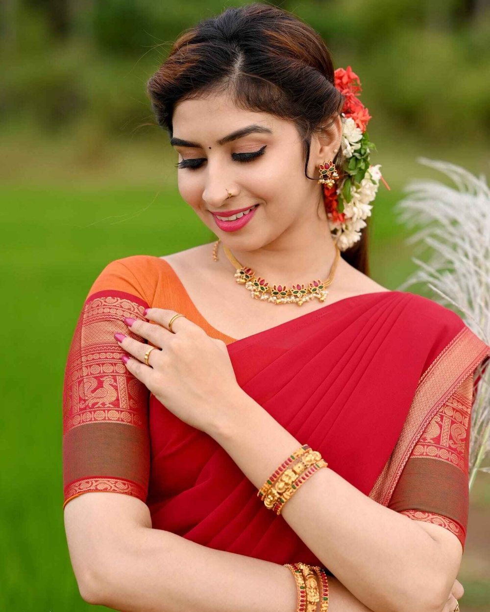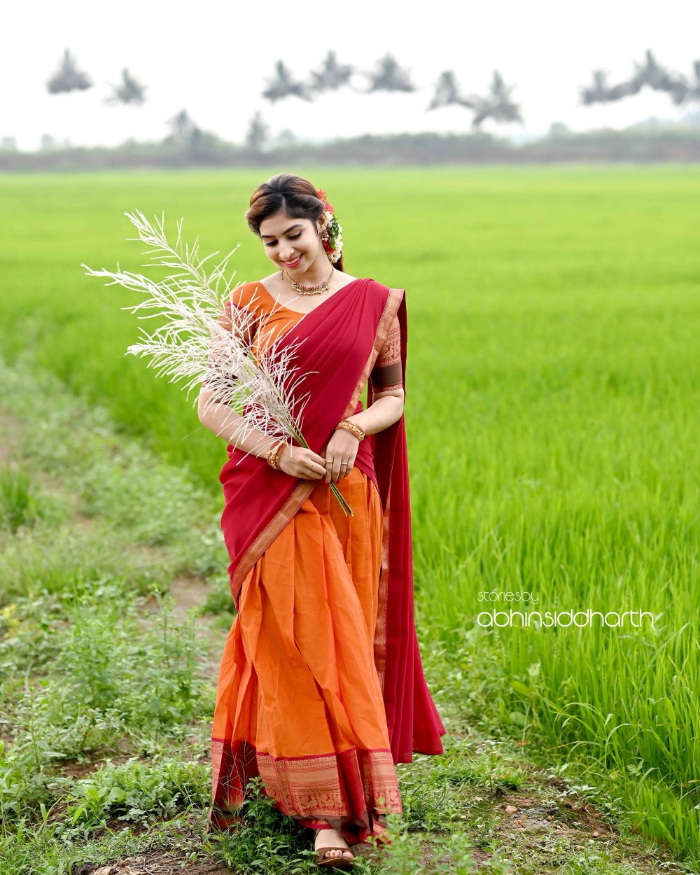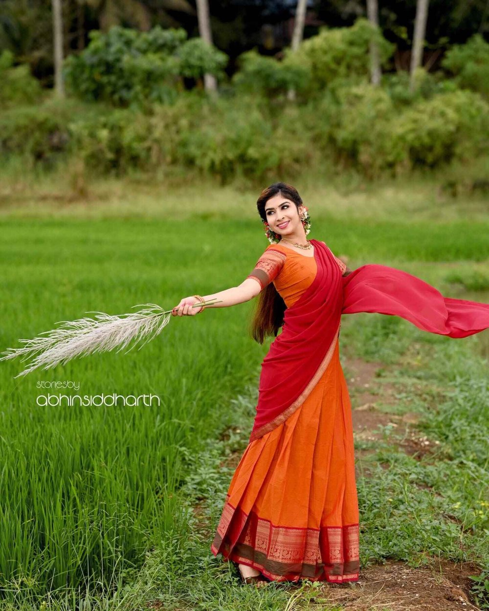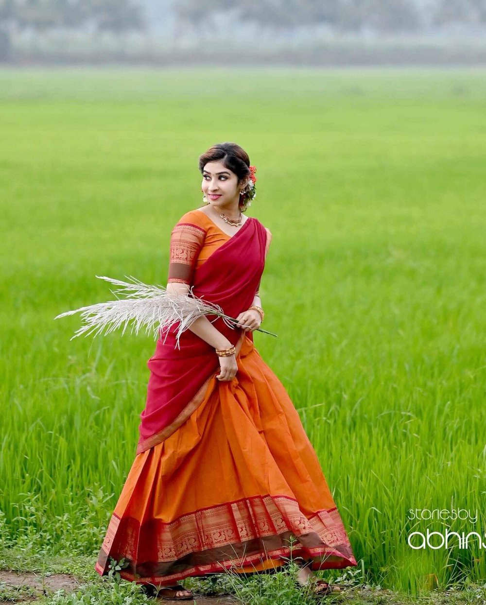 Kanchi cotton Halfsaree - Orange & Maroon-HSKN -9
