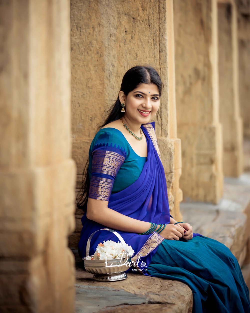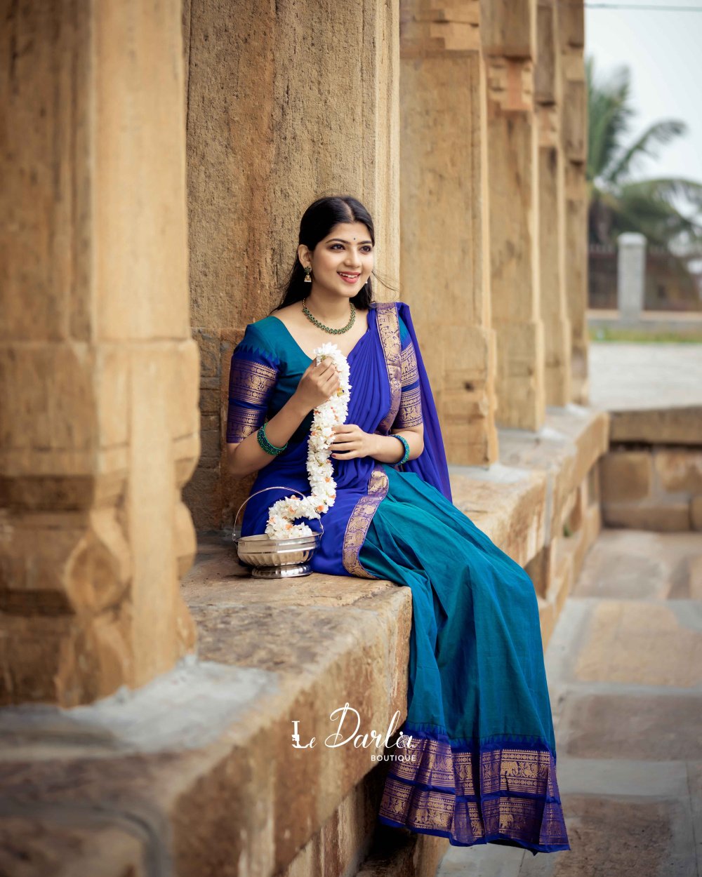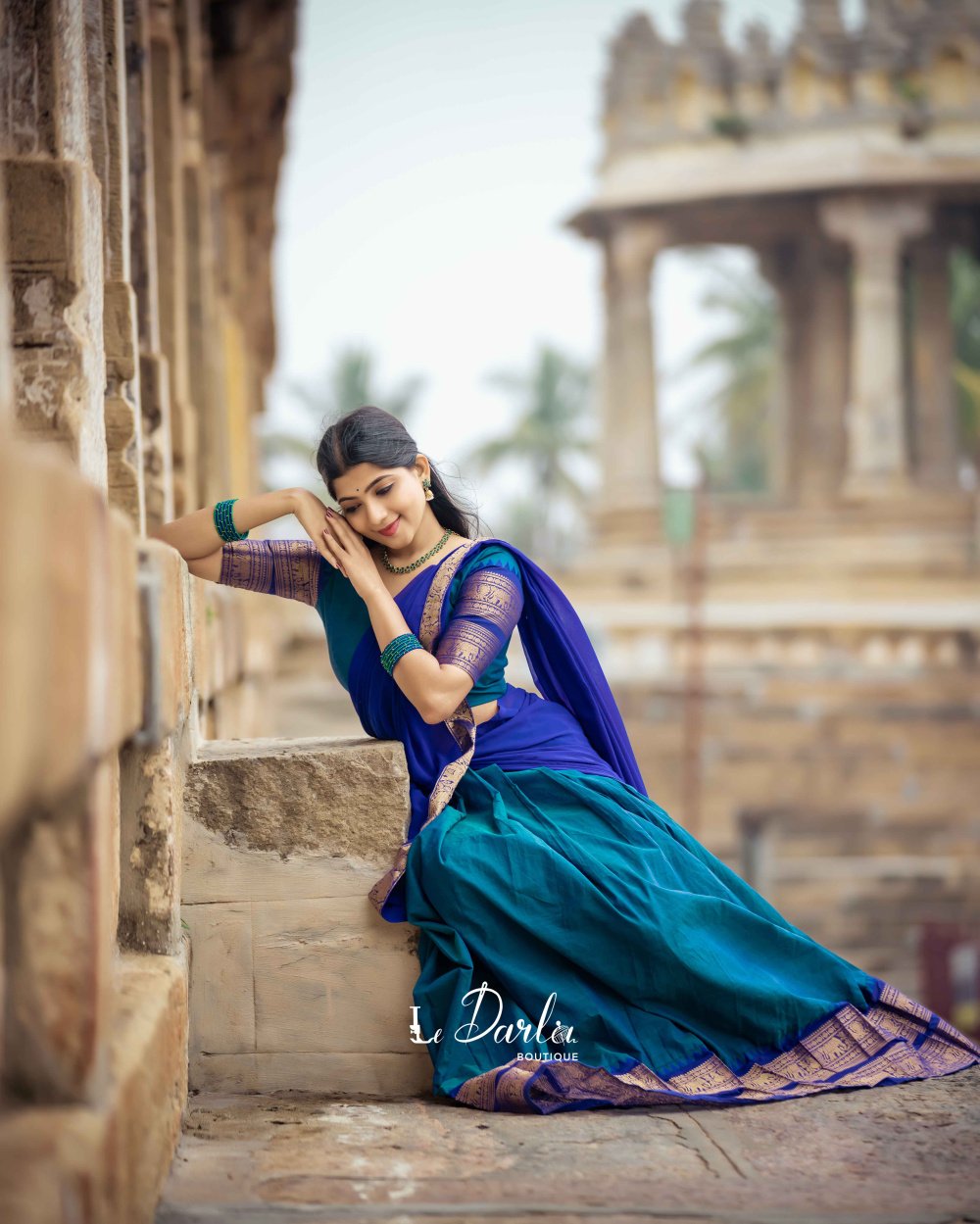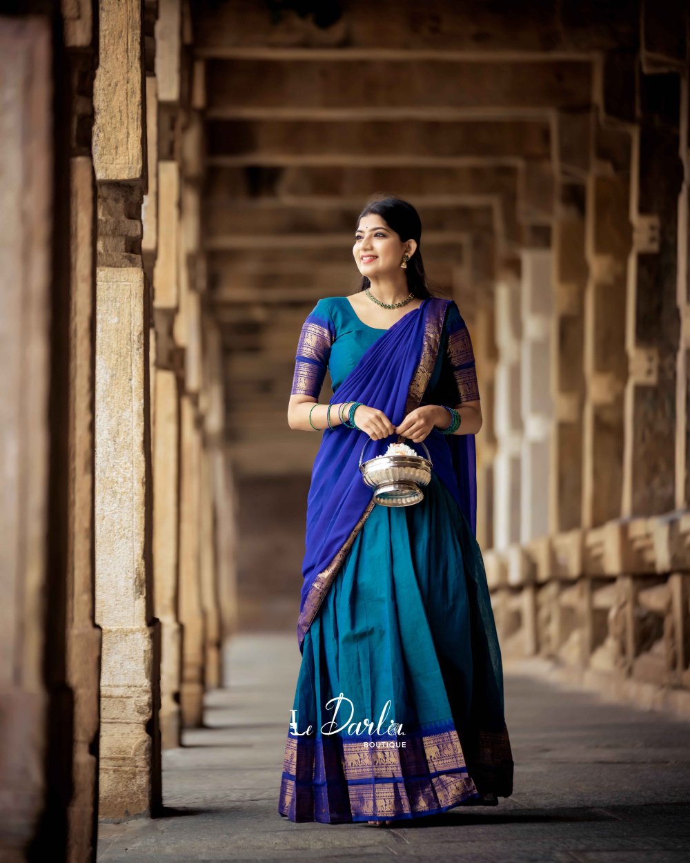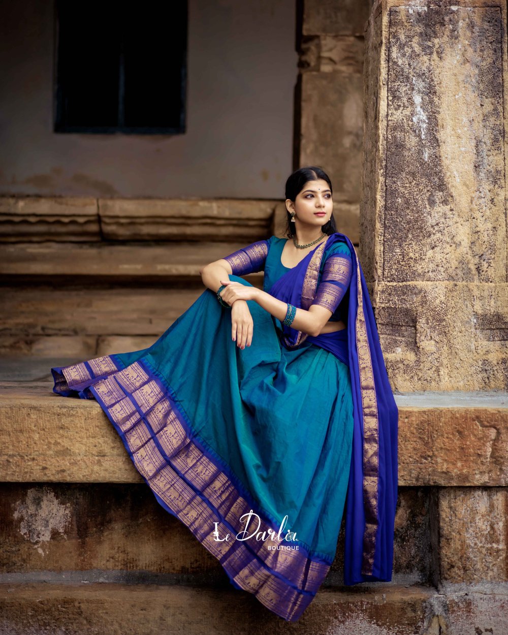 Kanchi cotton Halfsaree - Peacock blue & Pepsi Blue -HSKN-13
