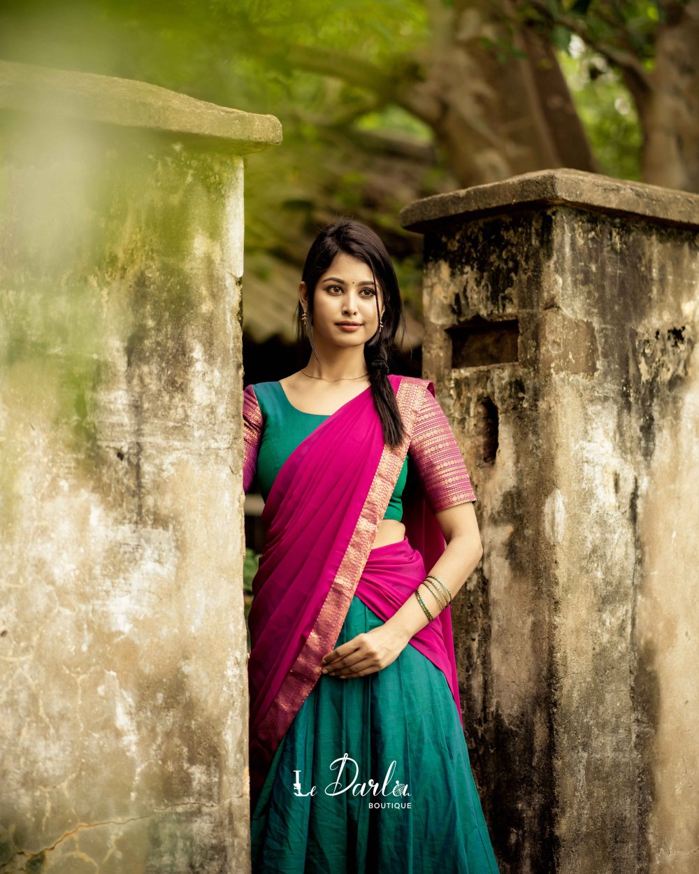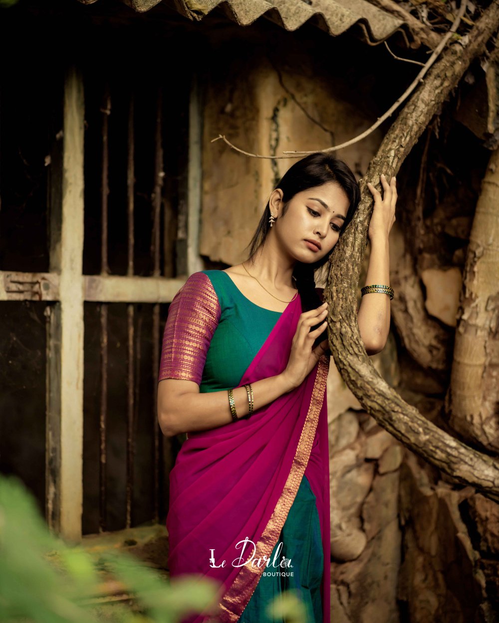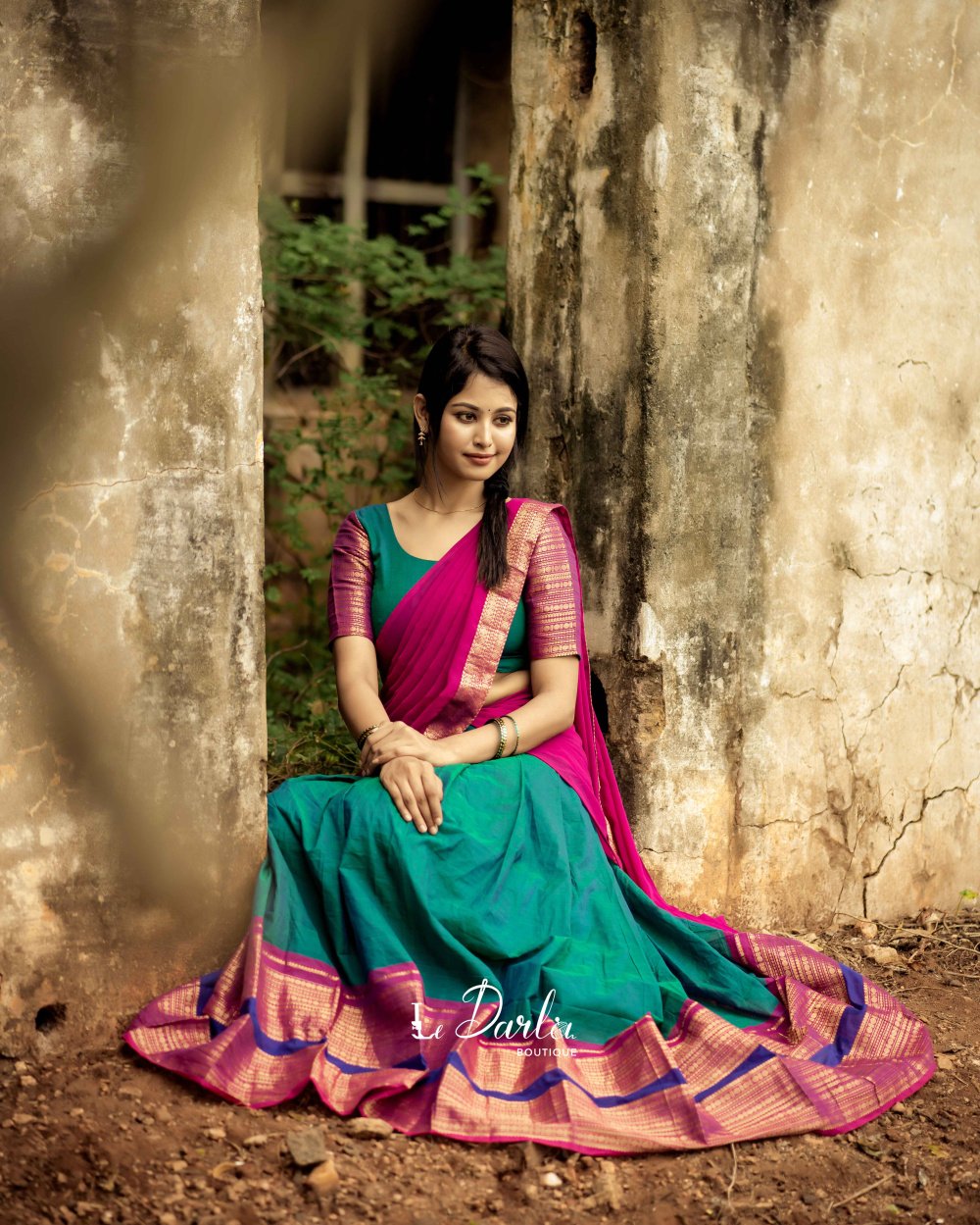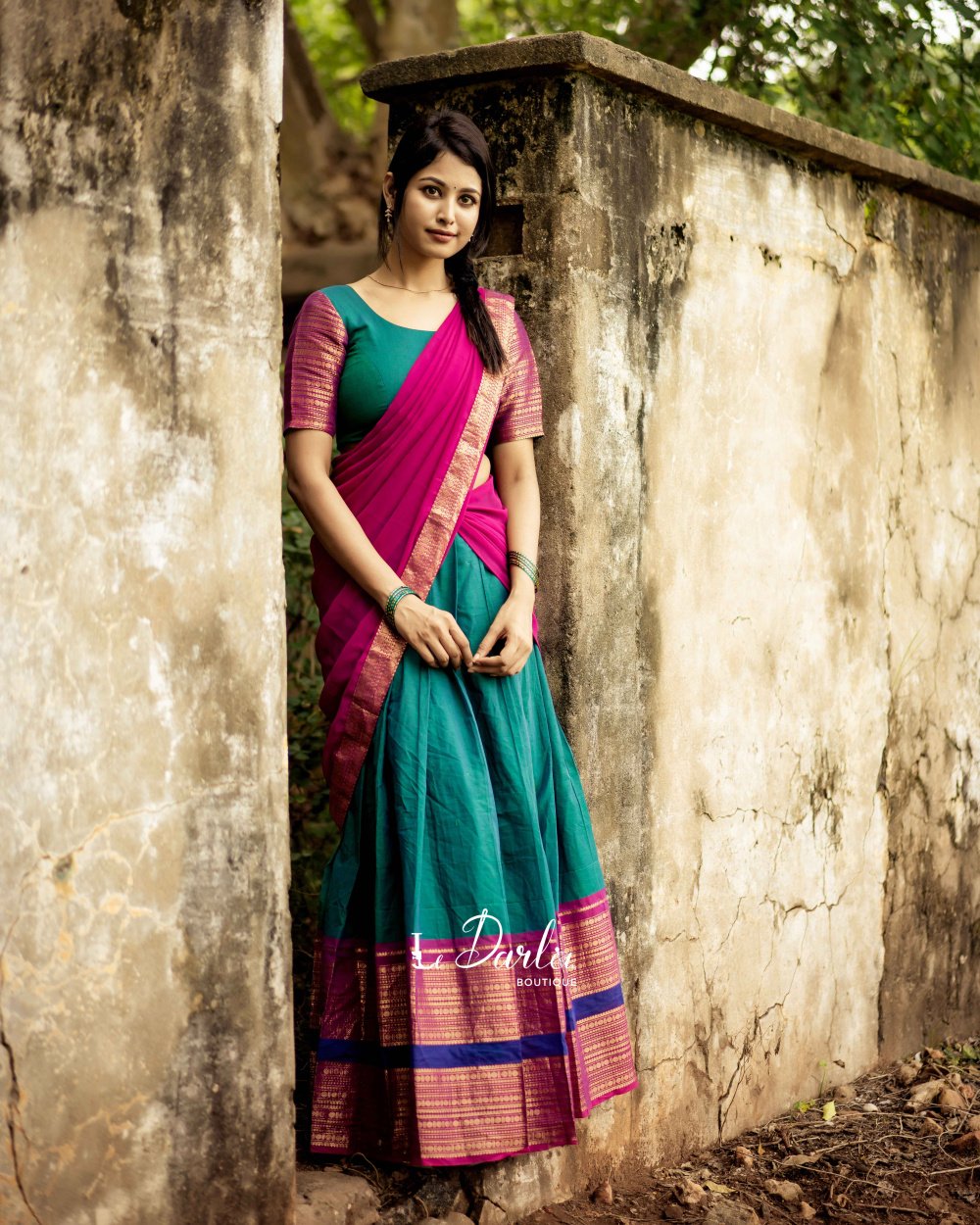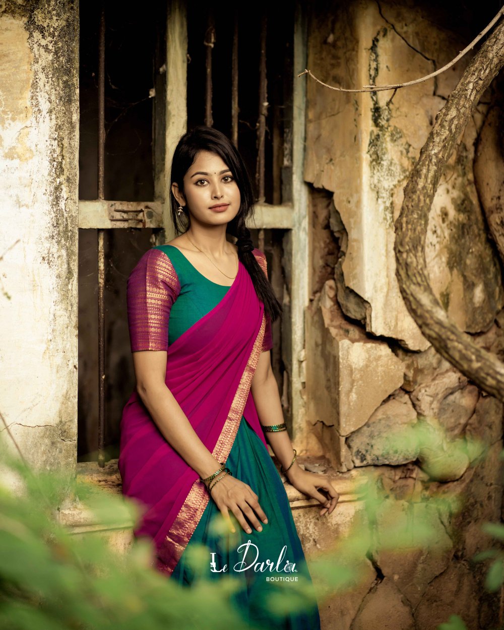 Kanchi cotton Halfsaree - Torquoise & Dark Majenta -HSKN-11