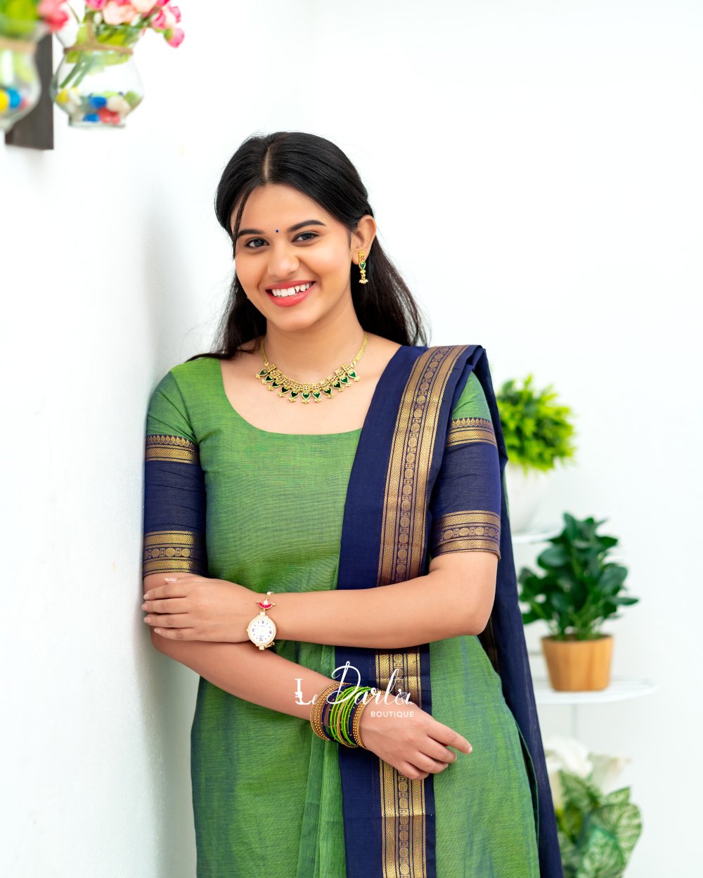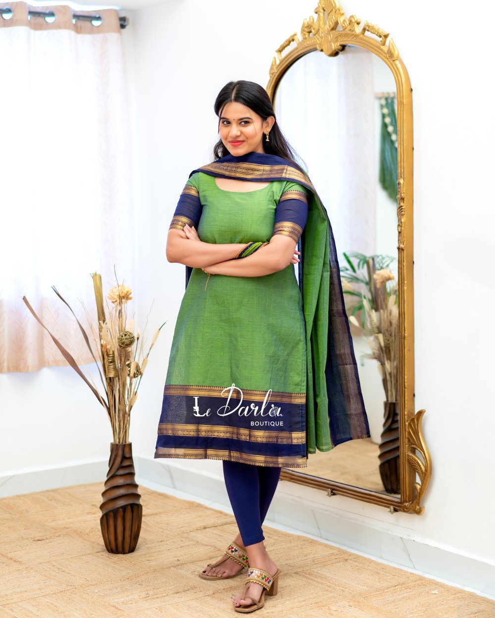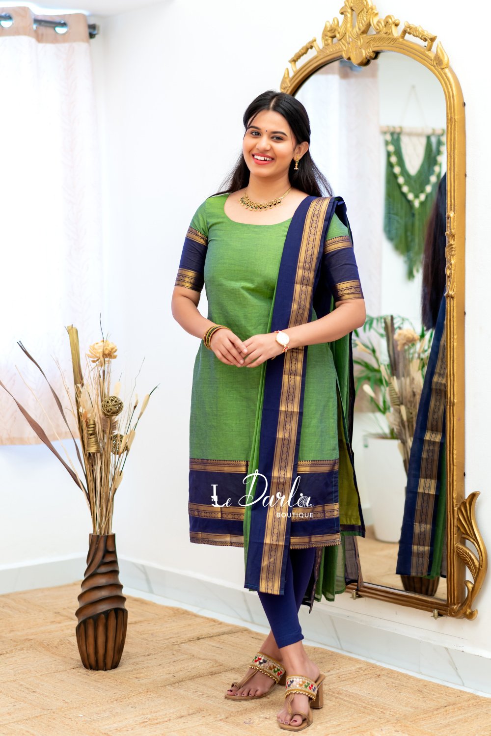 Kanchi Cotton Kurti - Green & Blue KKN-1