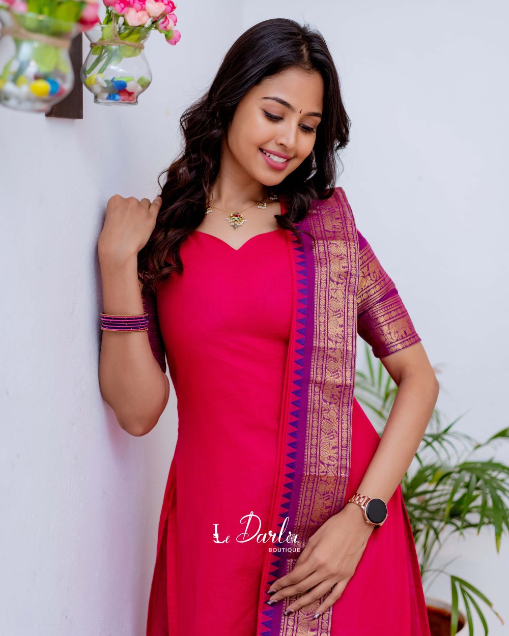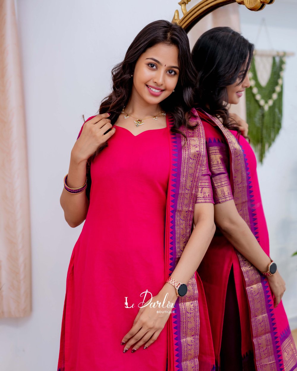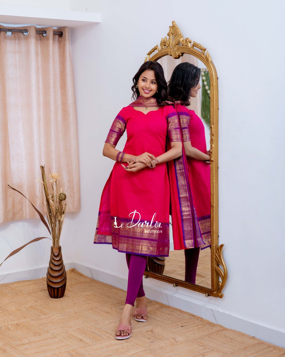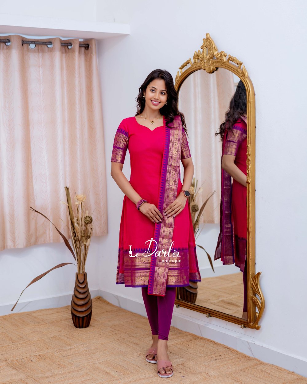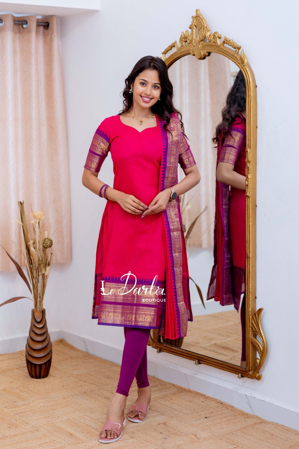 Kanchi Cotton Kurti - Majenta & Violet KKN-6