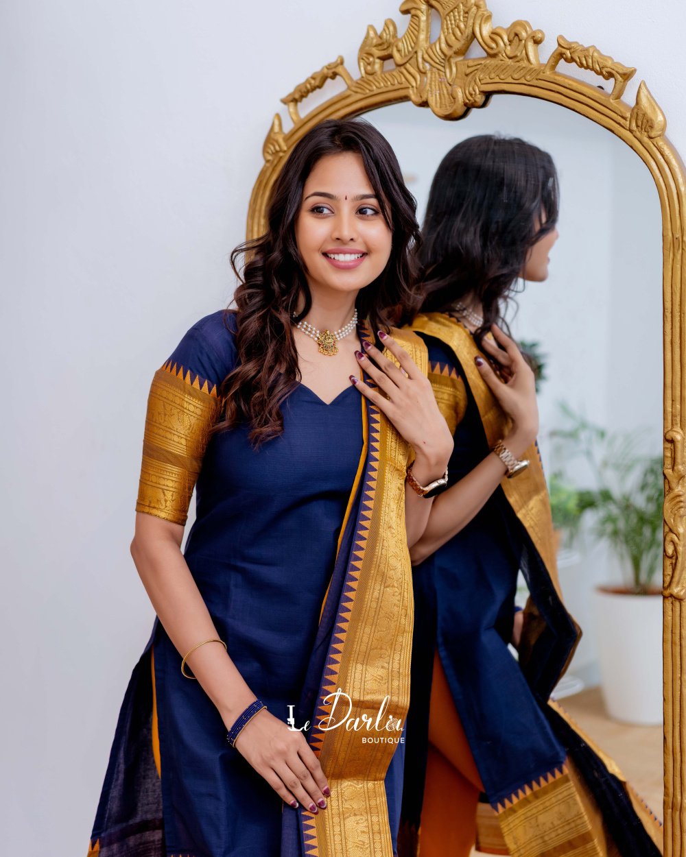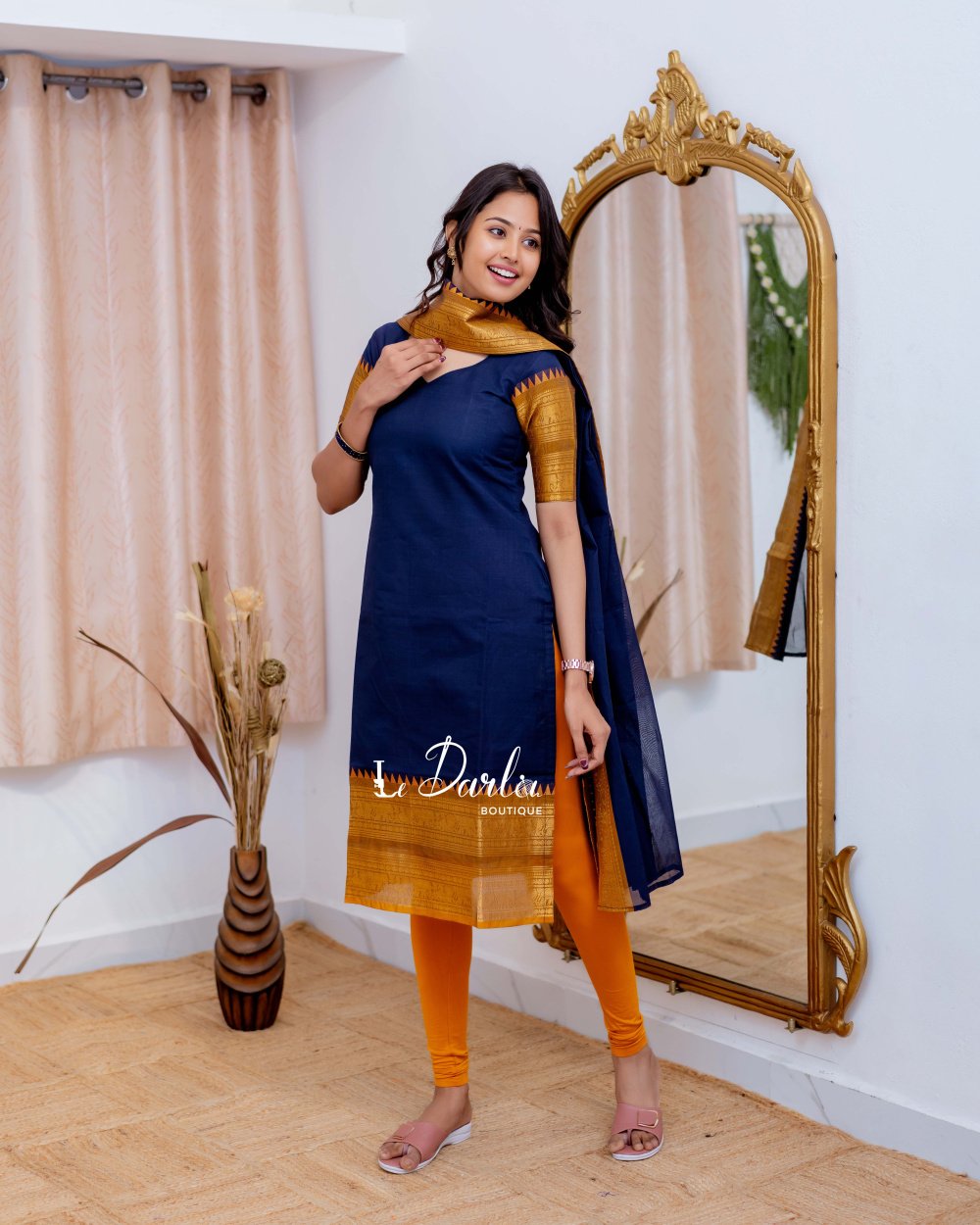 Kanchi Cotton Kurti - Navyblue & Gold KKN-19