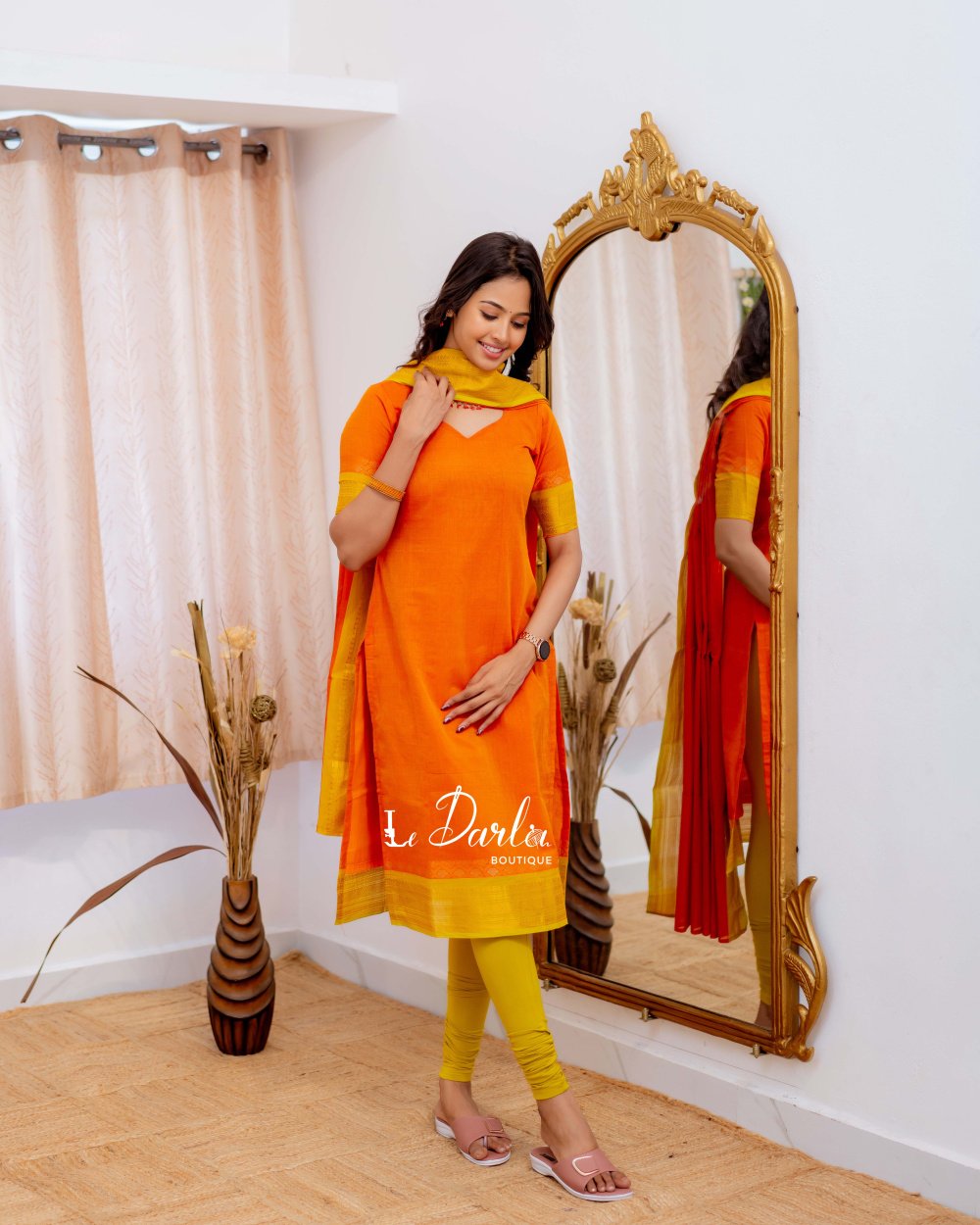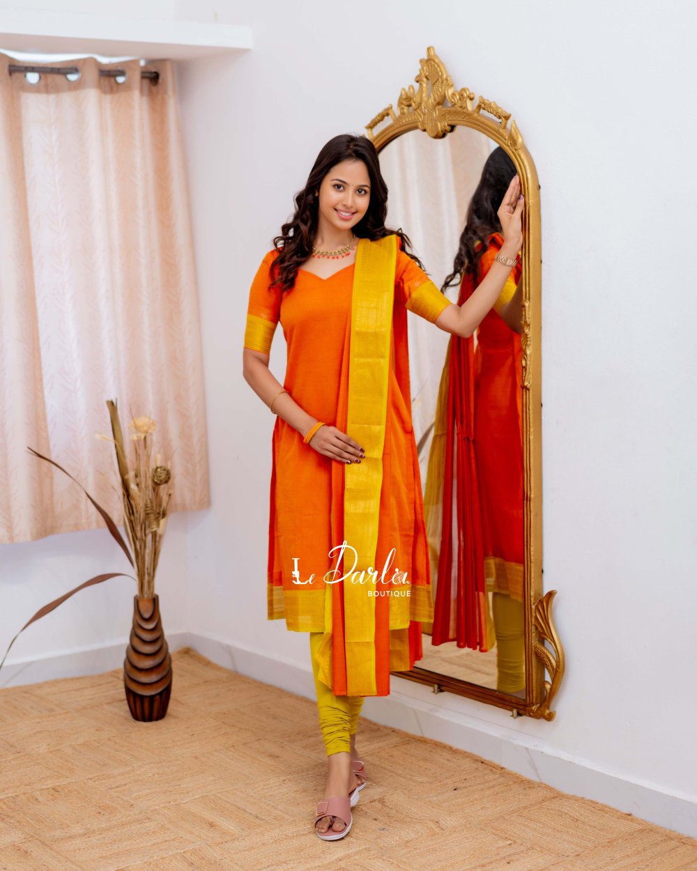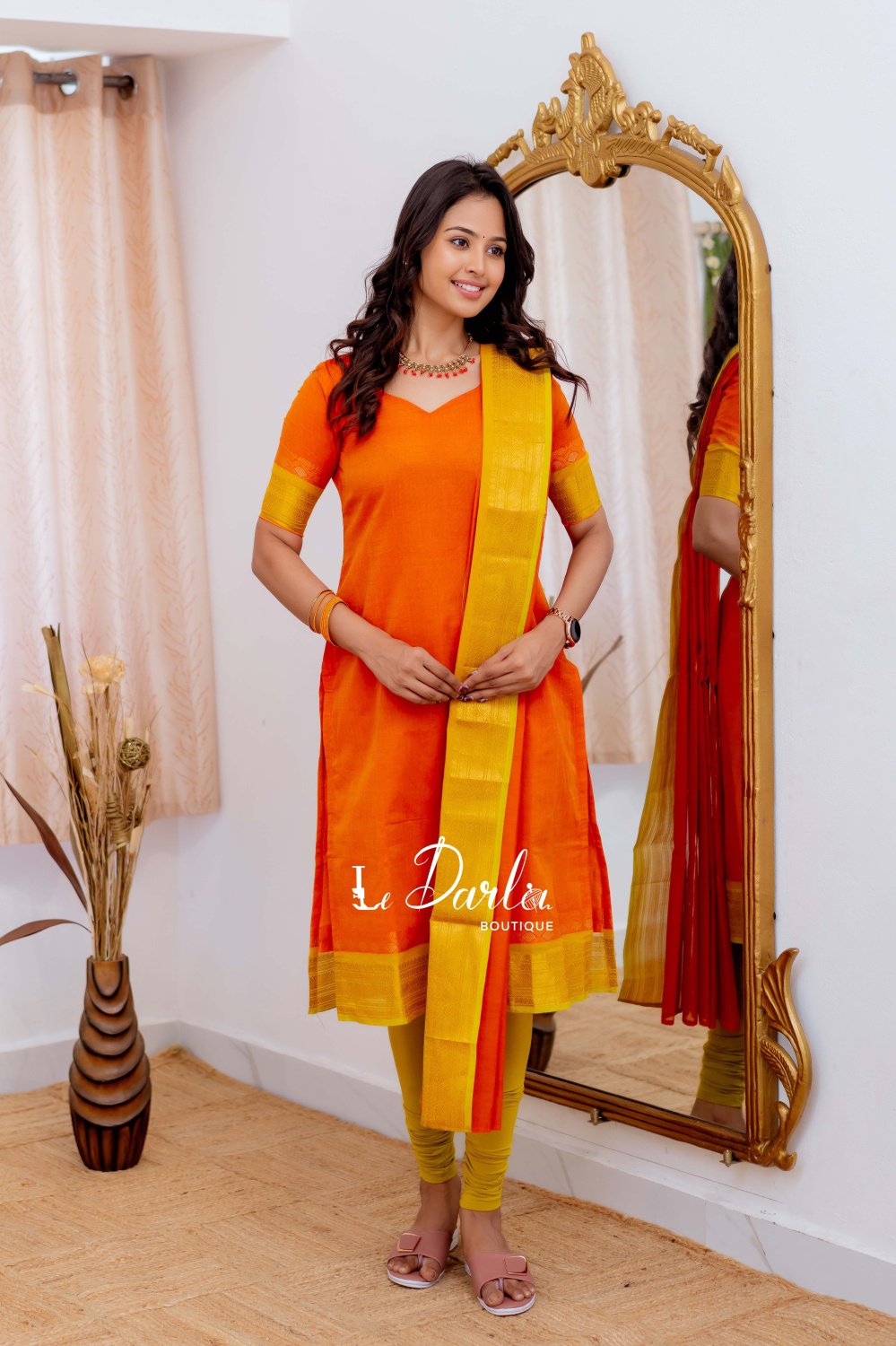 Kanchi Cotton Kurti - Orange & Lemonyellow - KKN-23