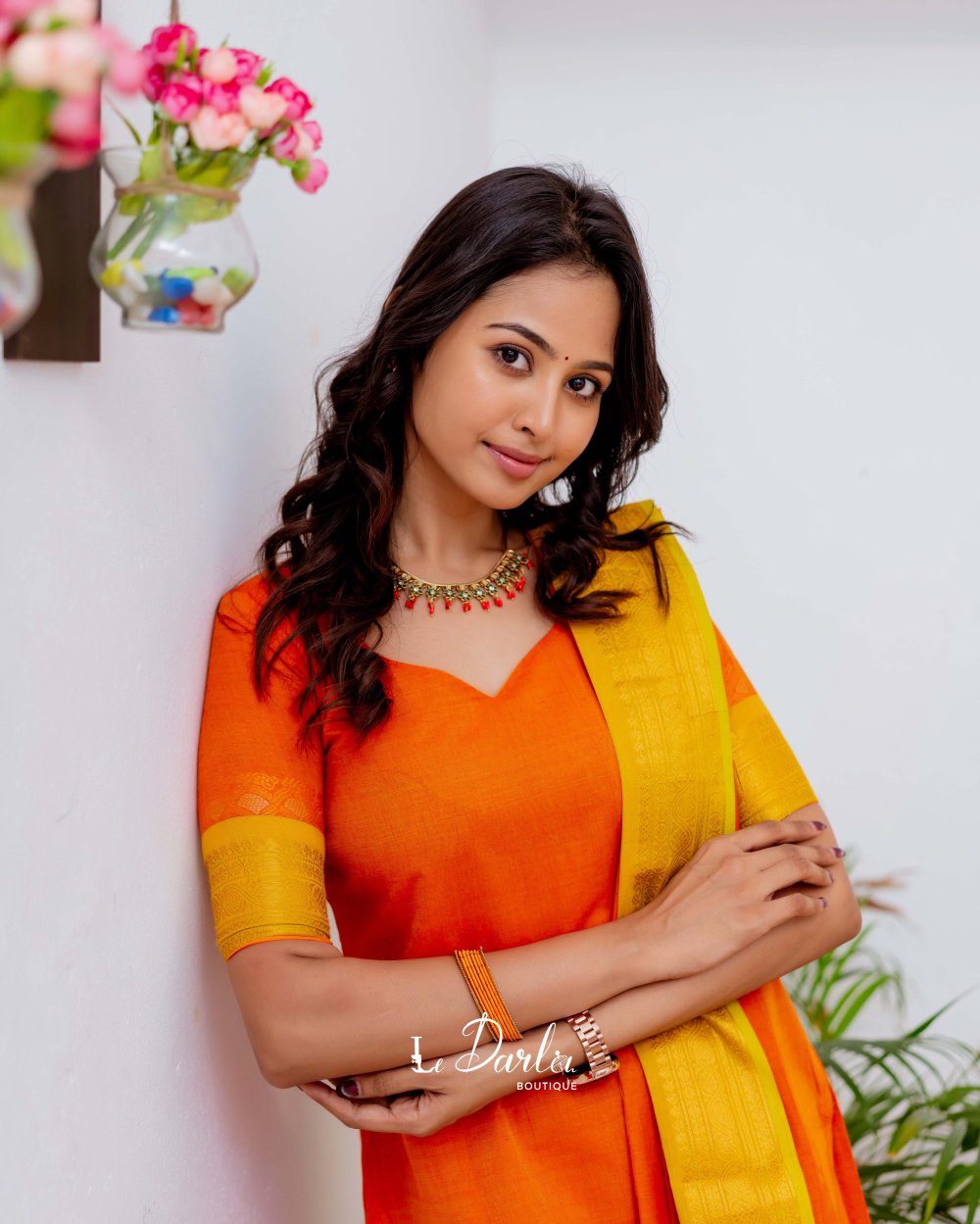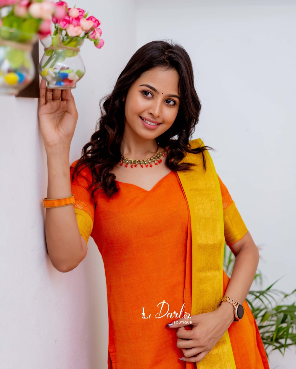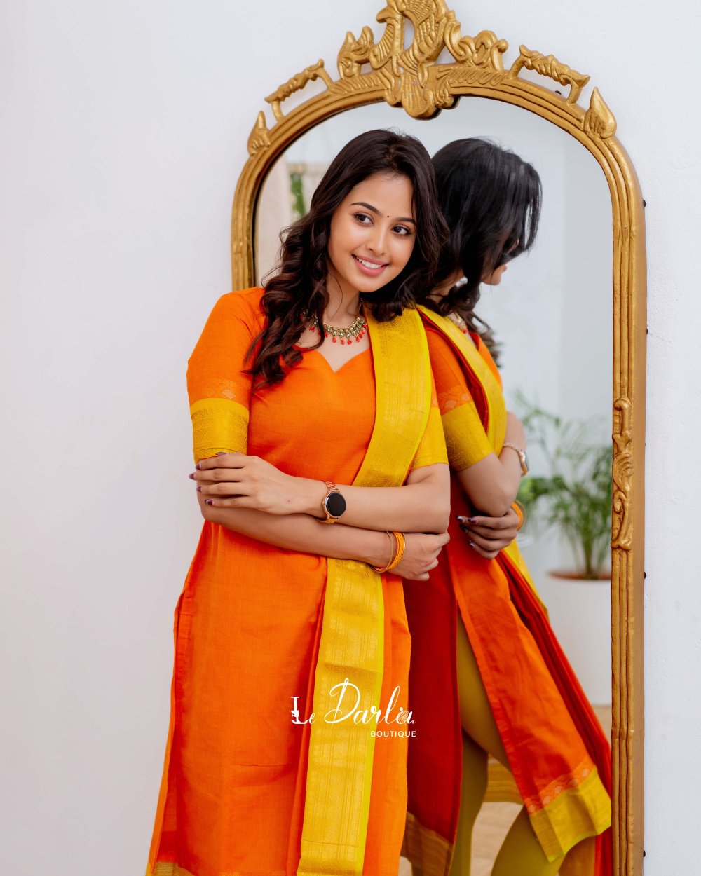 Kanchi Cotton Kurti - Orange & Lemonyellow - KKN-23