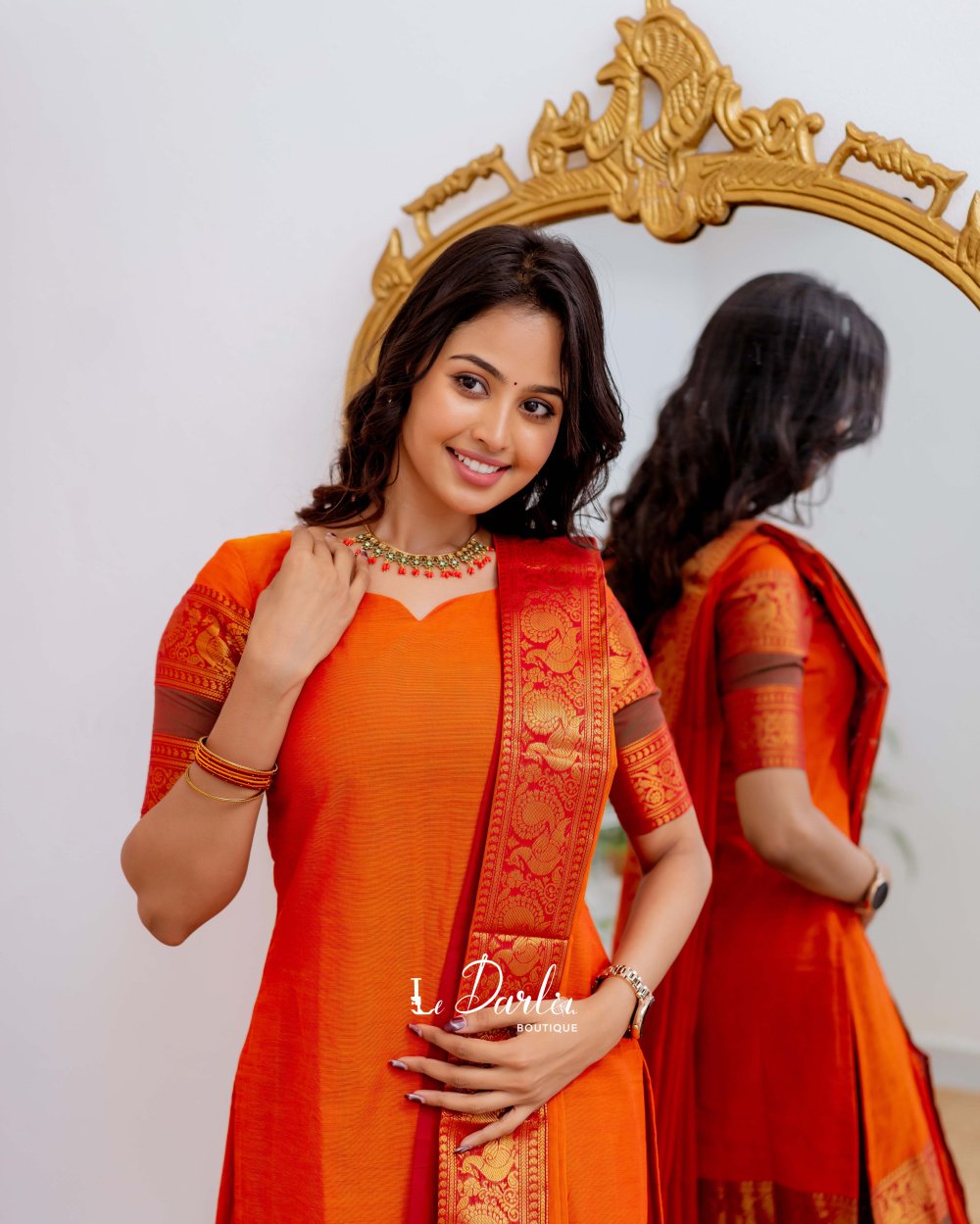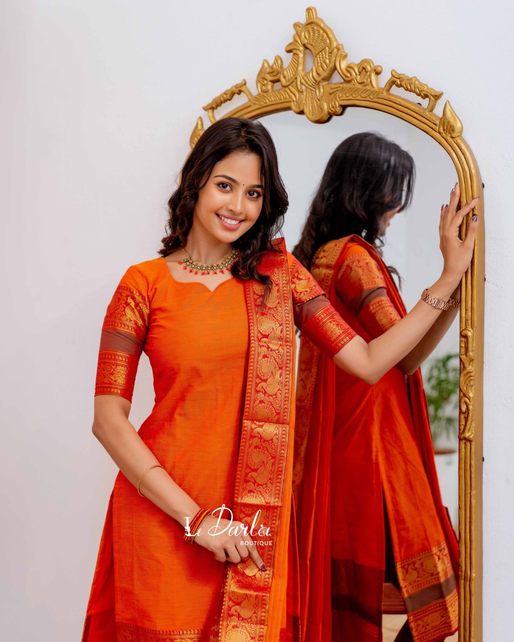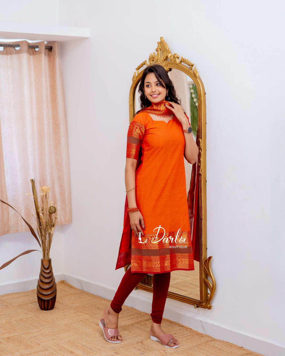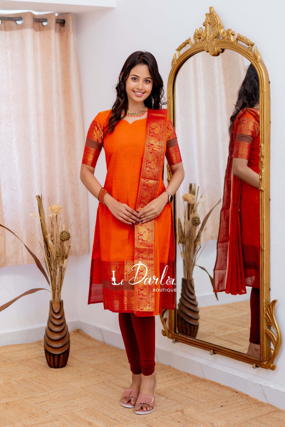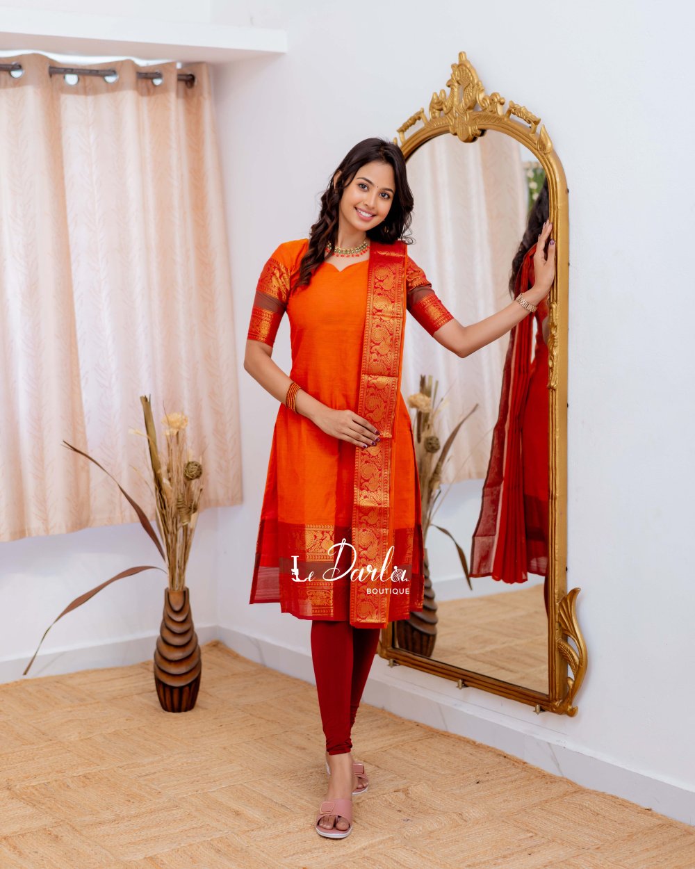 Kanchi Cotton Kurti - Orange & Maroon KKN-13