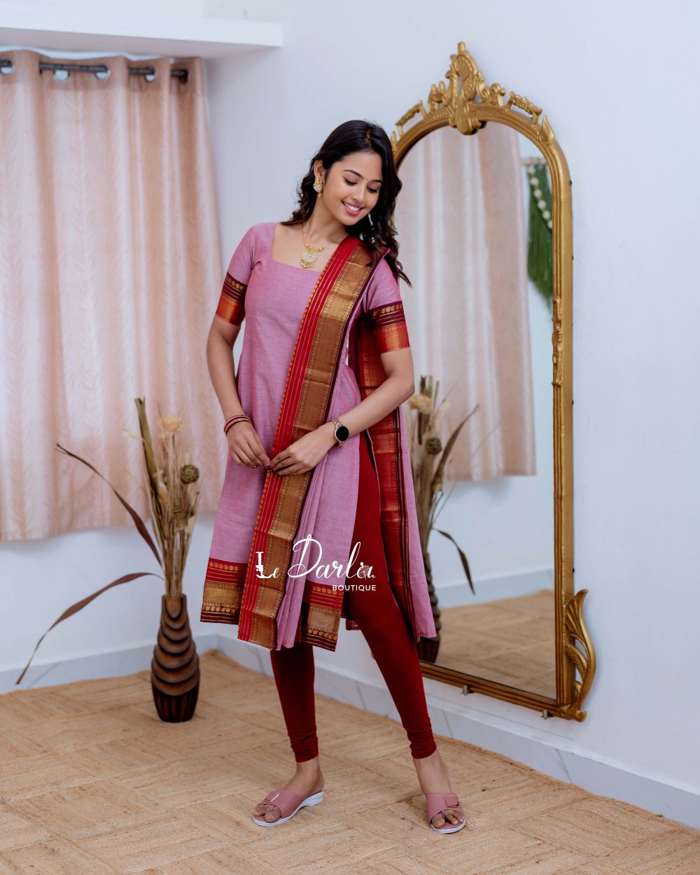 Kanchi Cotton Kurti - Rust & Coffee Brown KKN-3