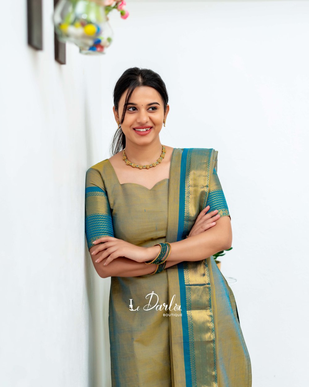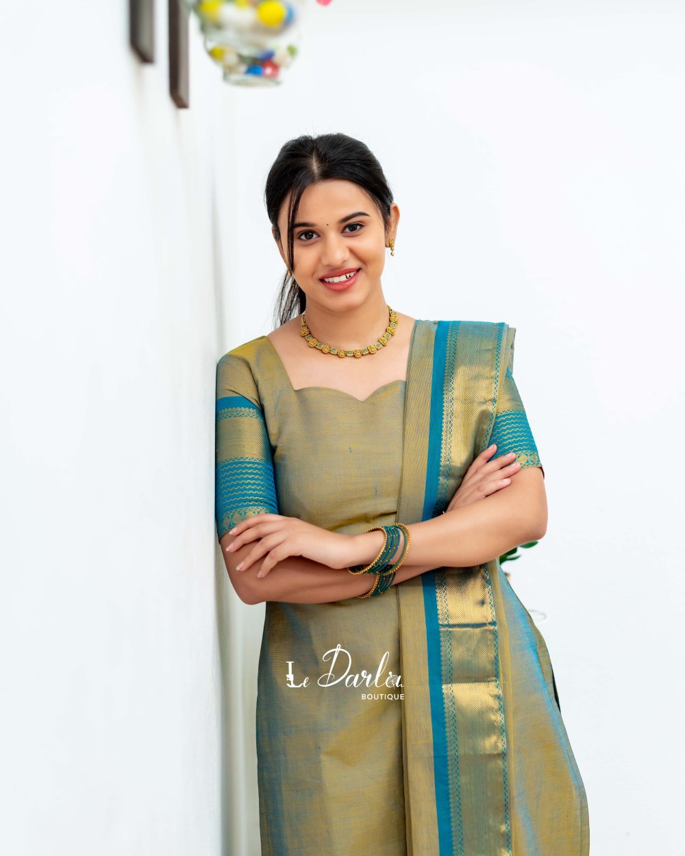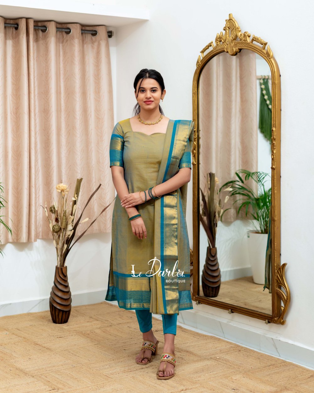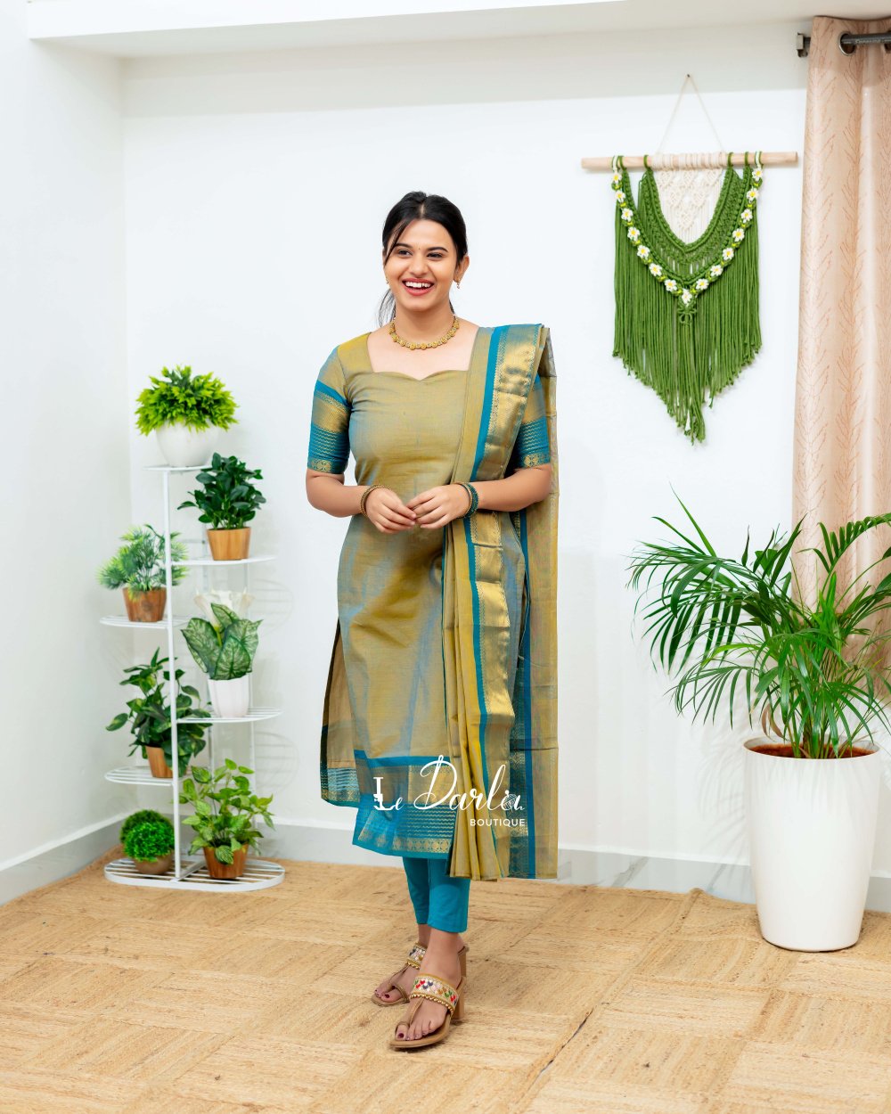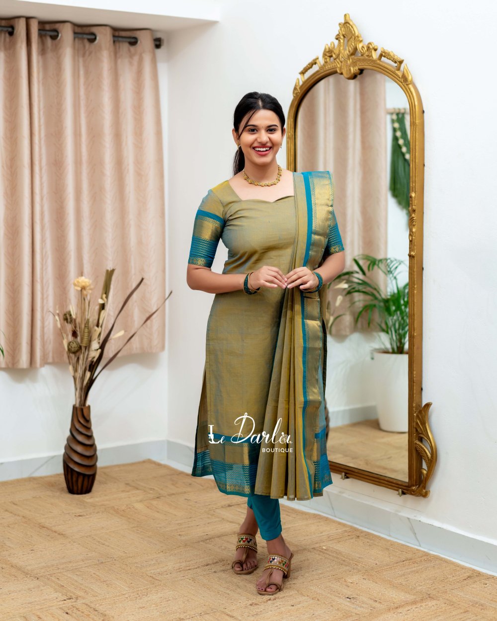 Kanchi Cotton Kurti - Sand Gold & Turquoise KKN-4