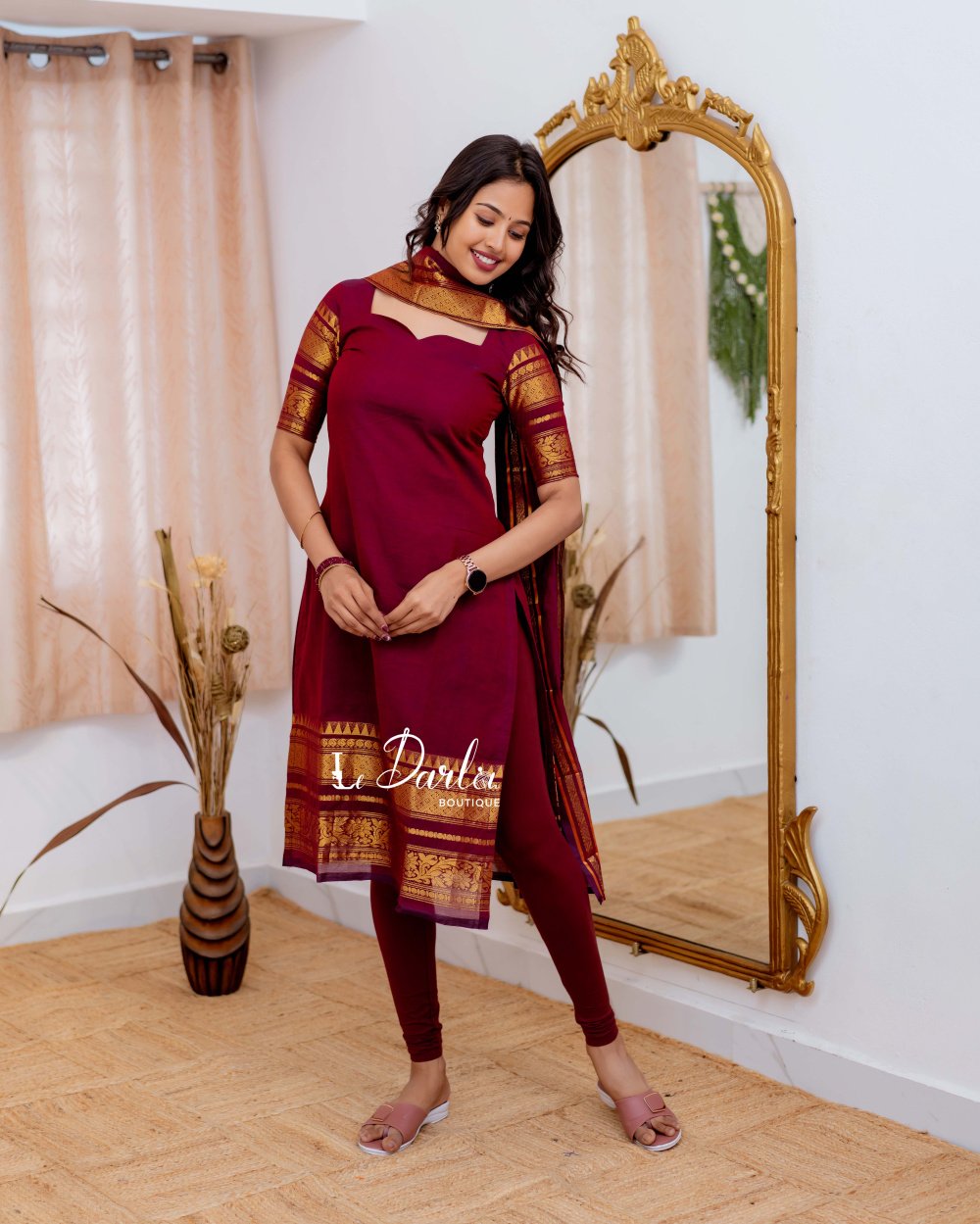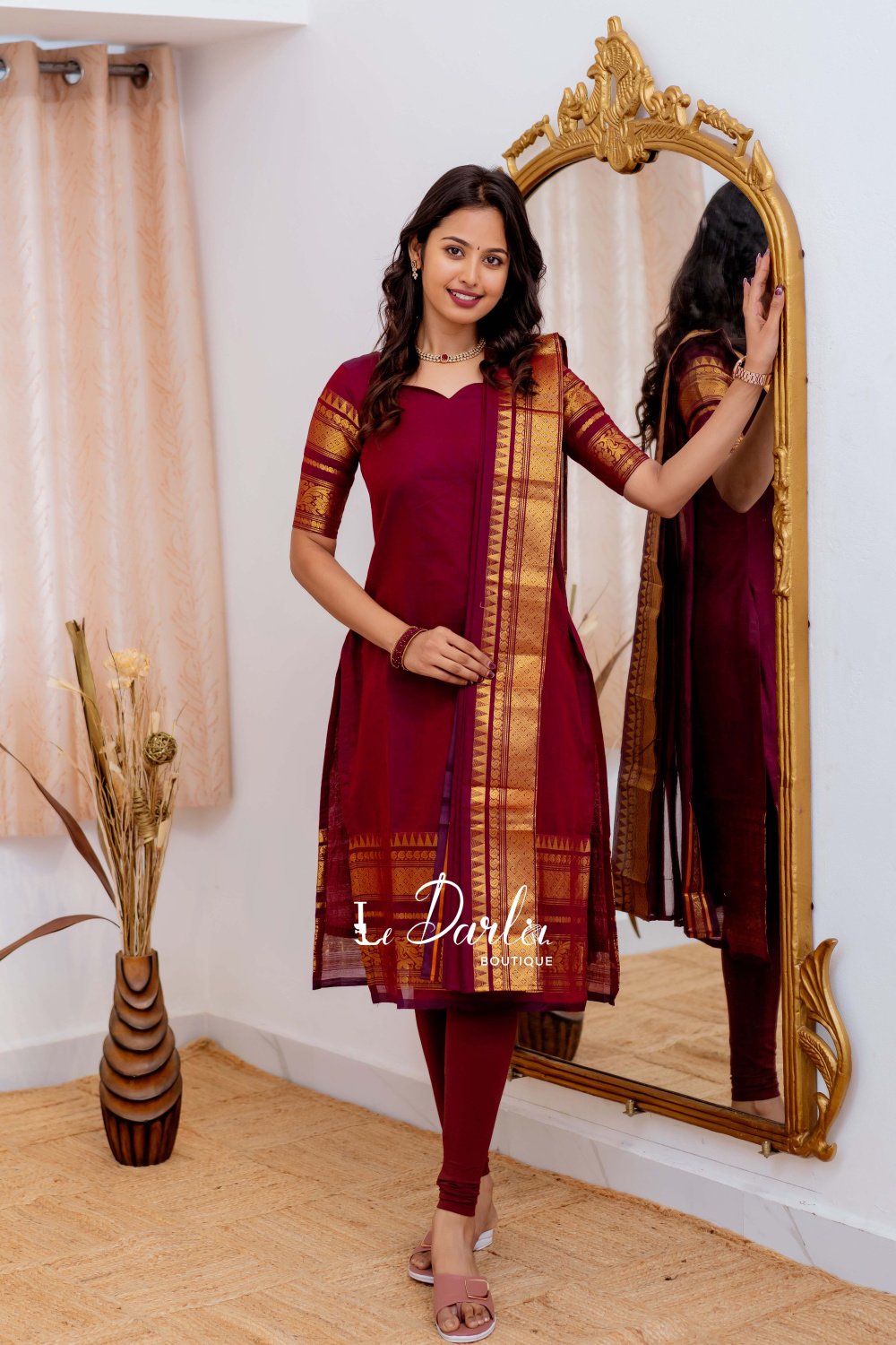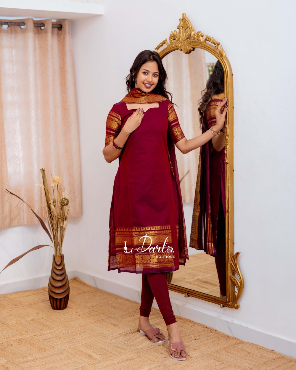 Kanchi Cotton Kurti - Wine Bigborder KKN-16