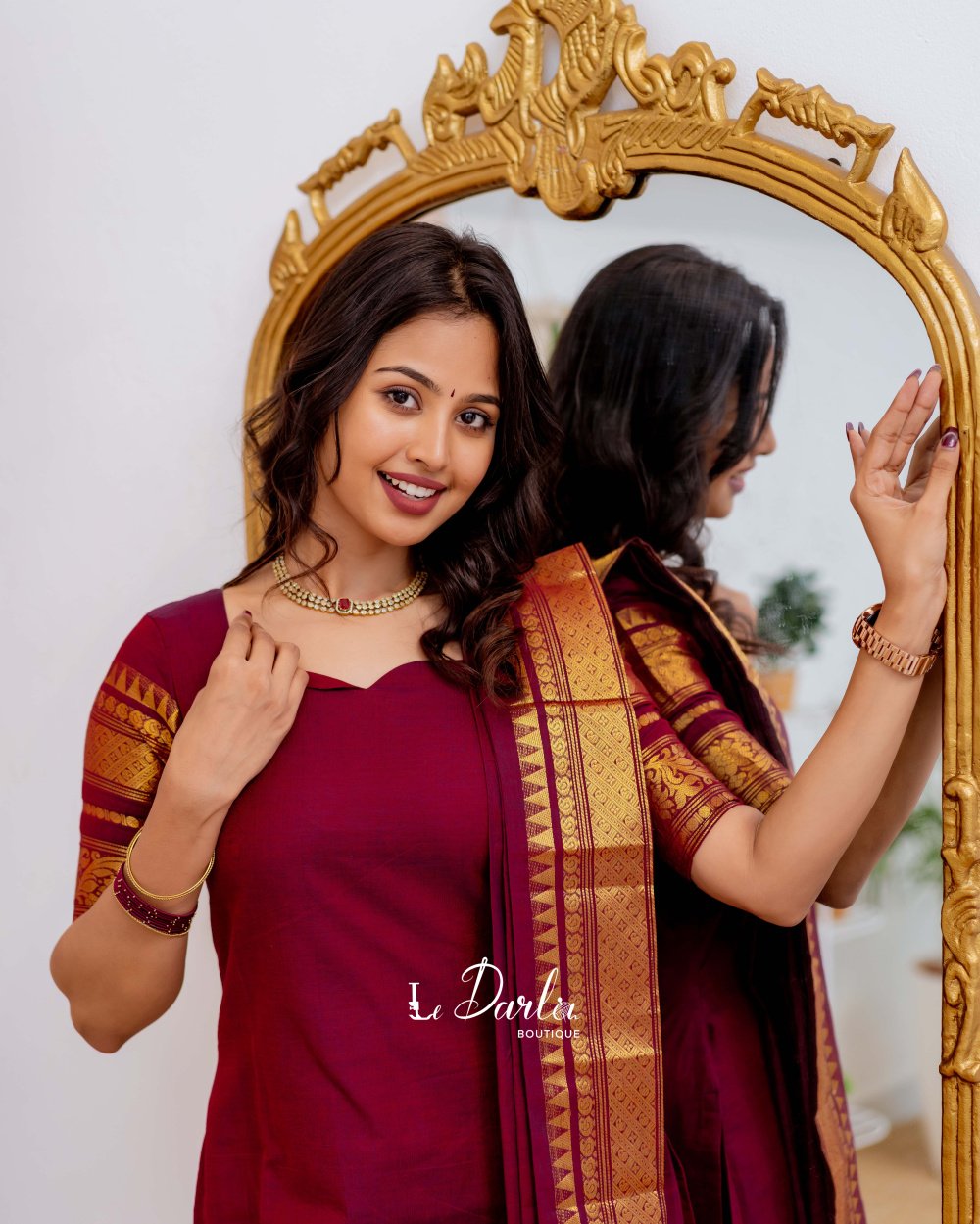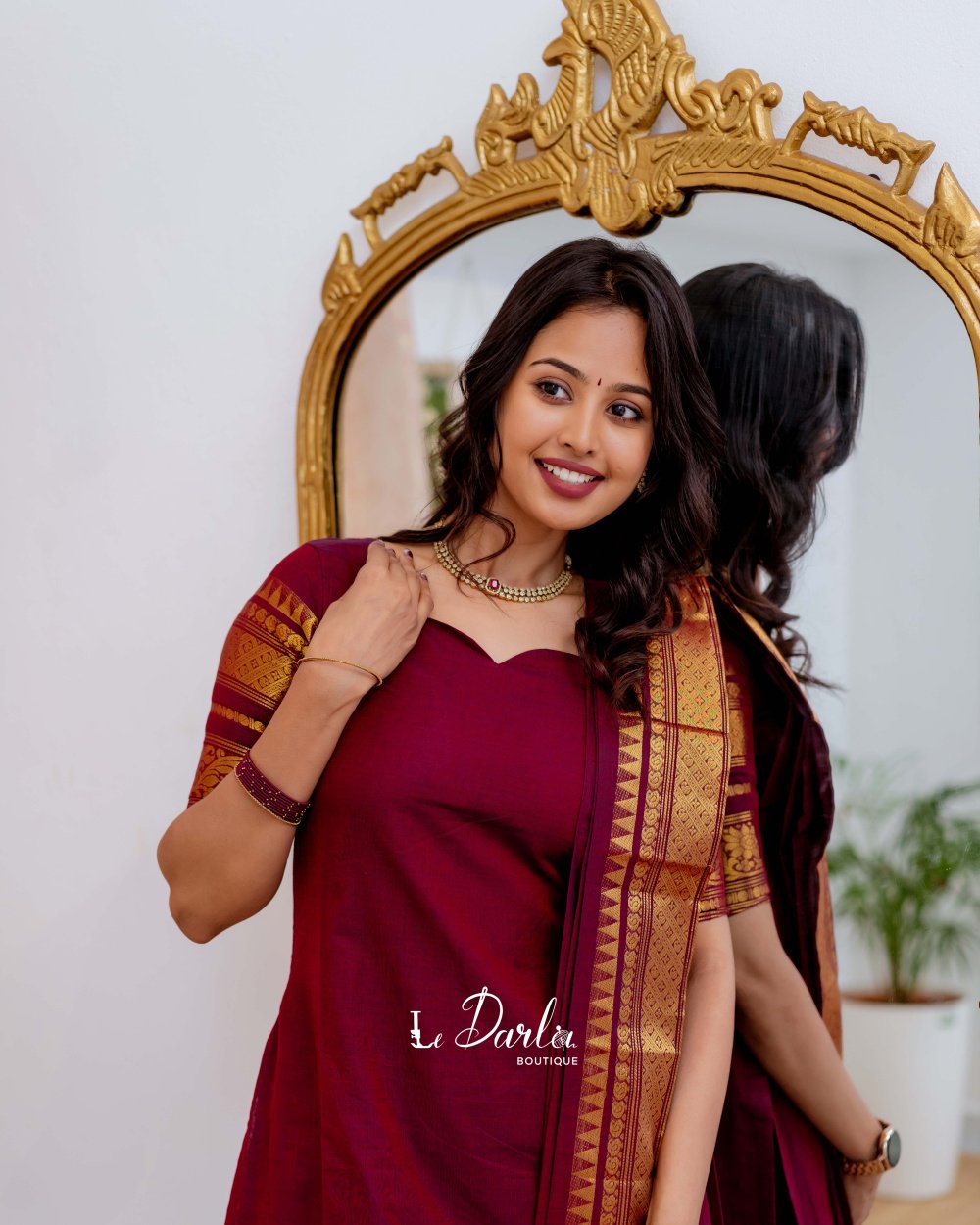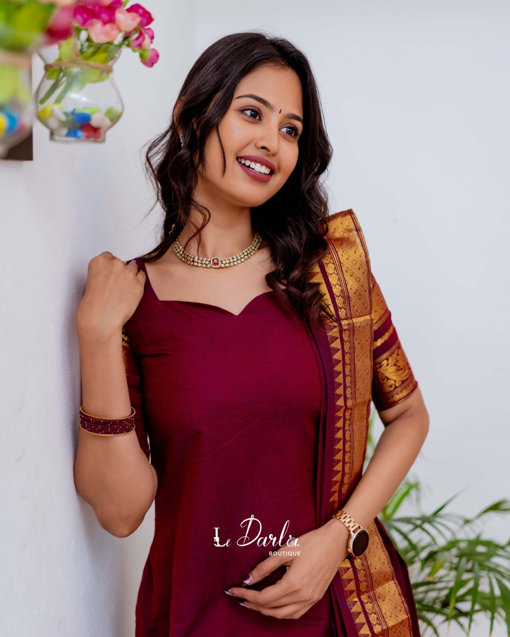 Kanchi Cotton Kurti - Wine Bigborder KKN-16