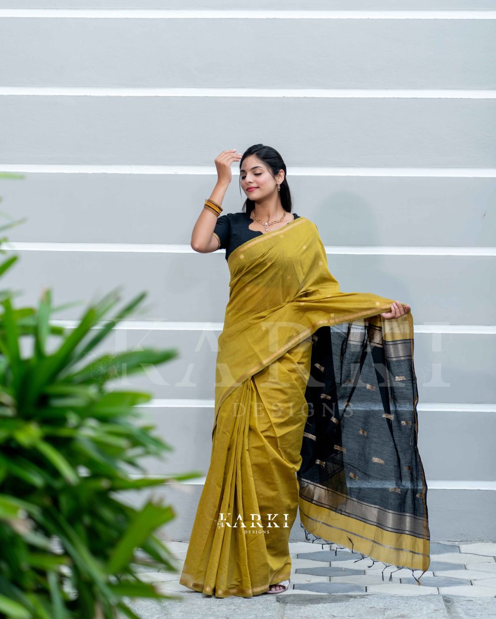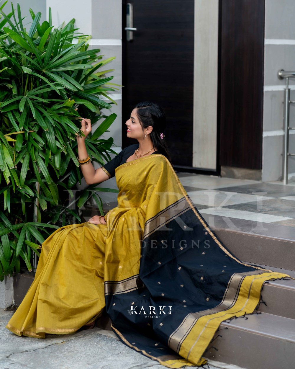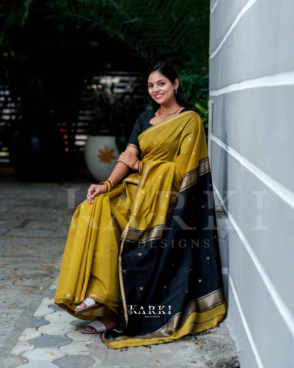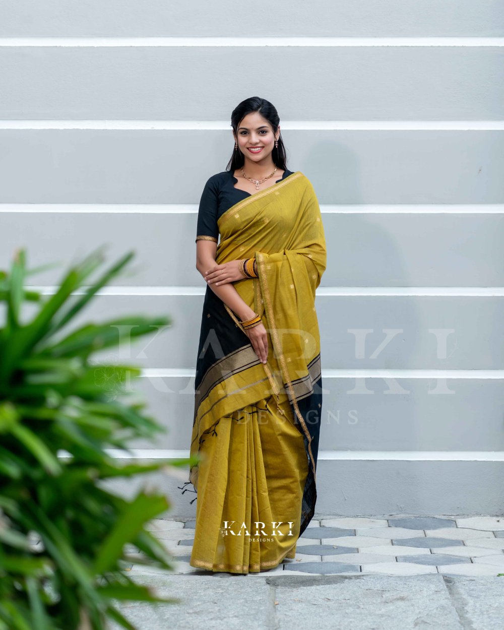 Colour:Mustard & Black Maheswari Cotton Sarees
