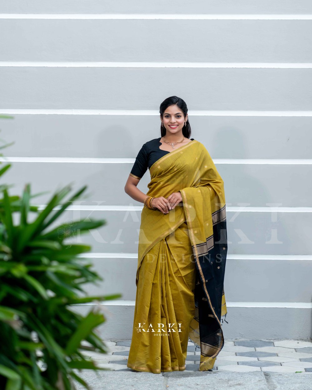 Mustard & Black Maheswari Cotton Sarees -SMK-3