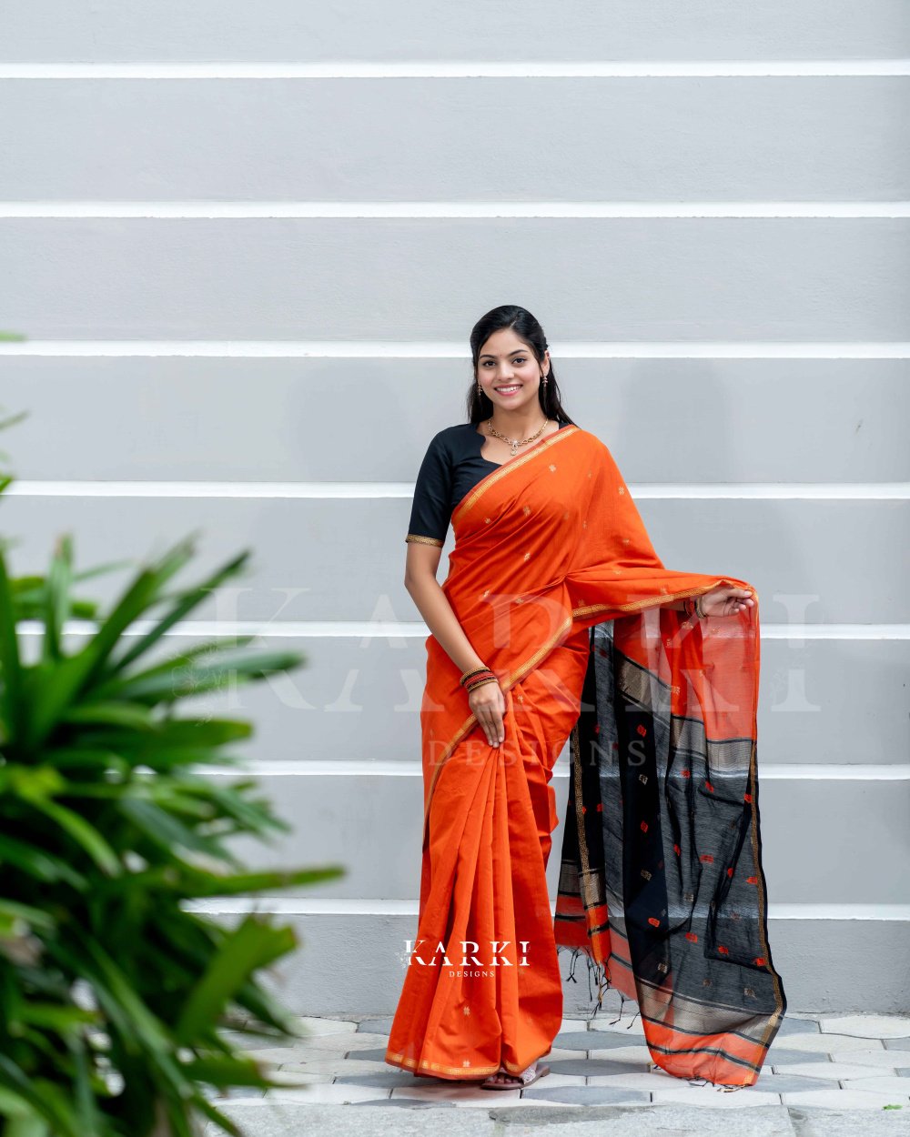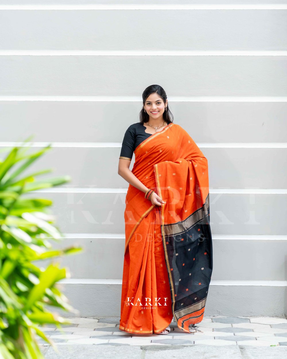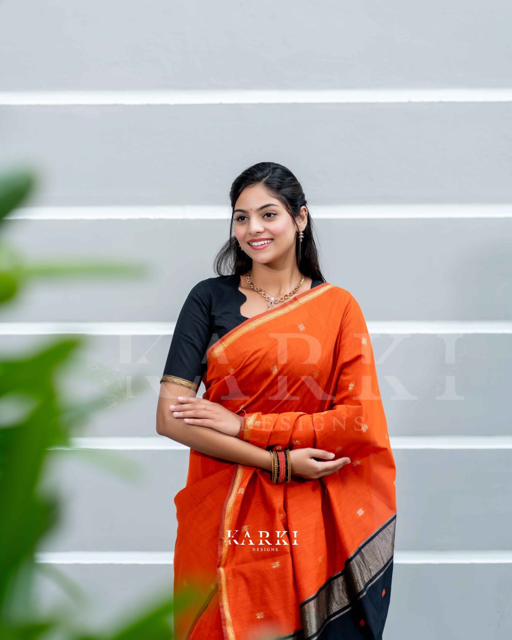 Orange & Black Maheswari Cotton Saree -SMK-2