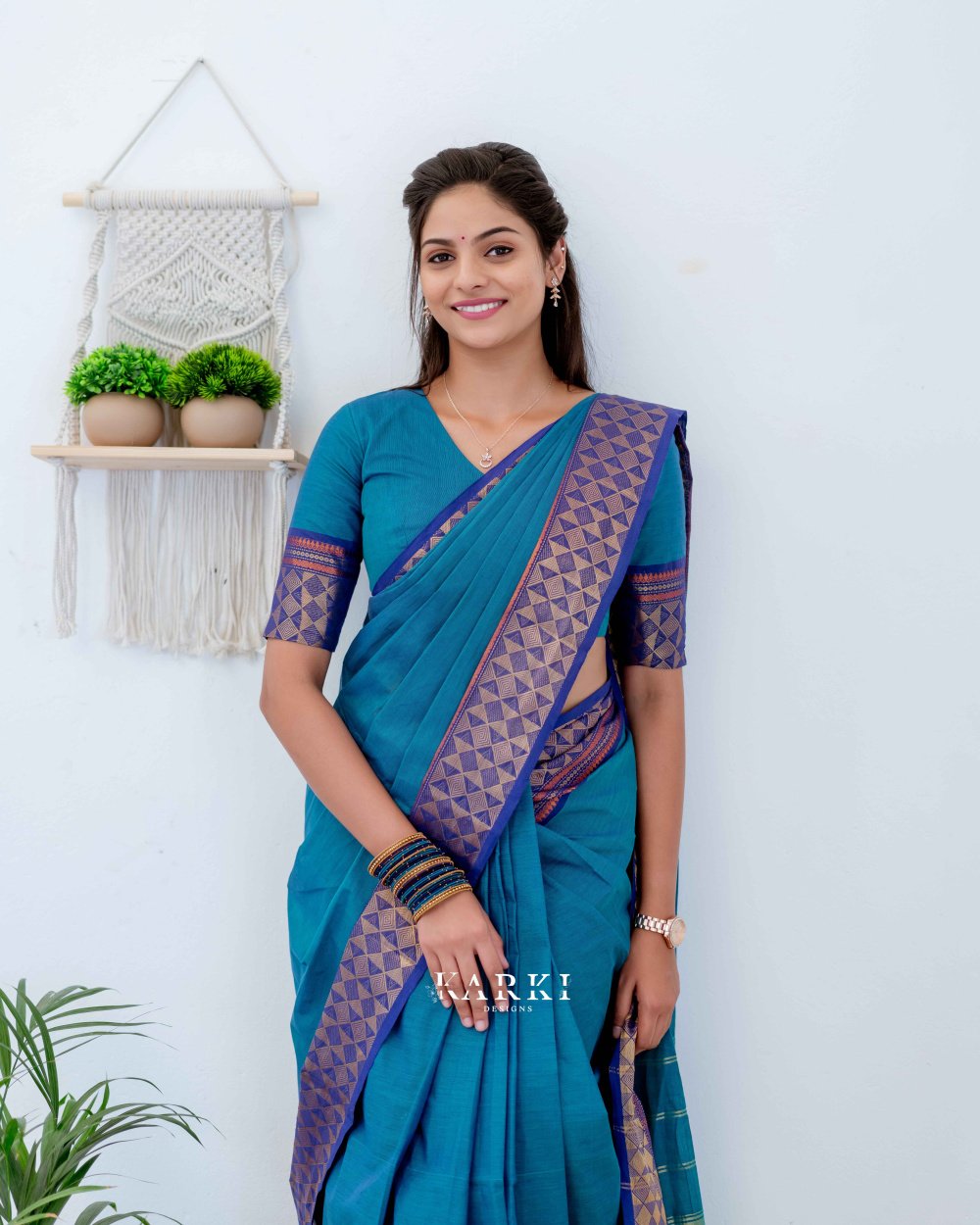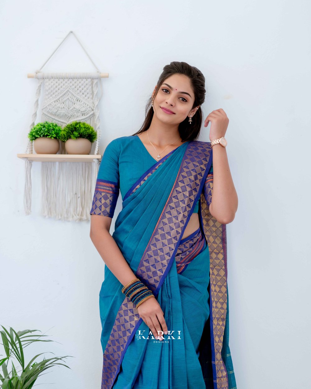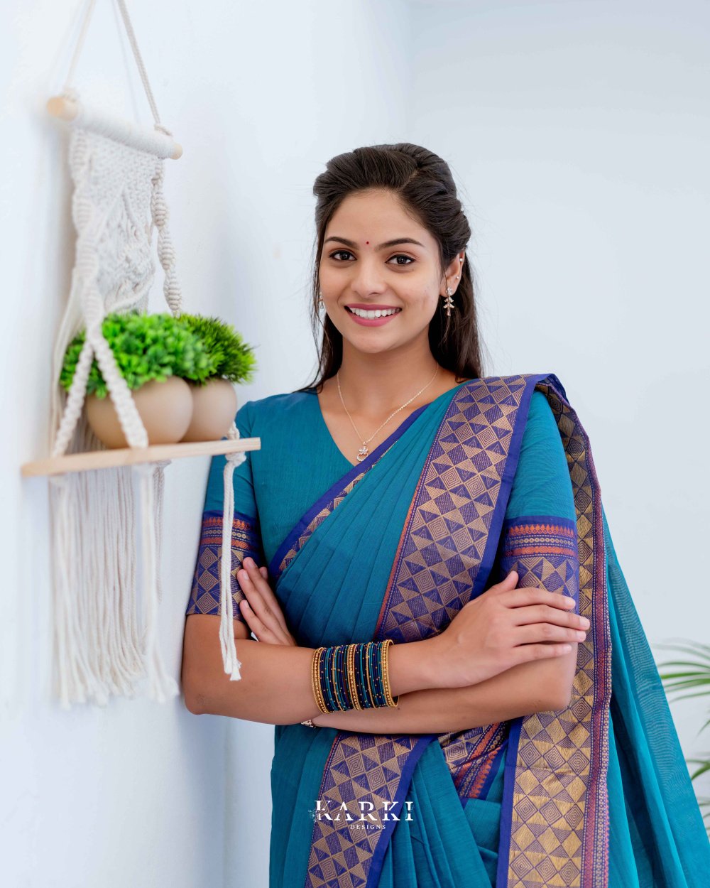 Colour: Peacock Blue Kanchi Cotton Sareee