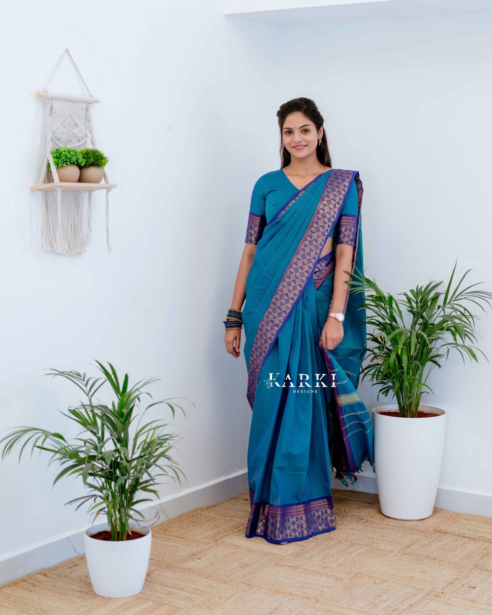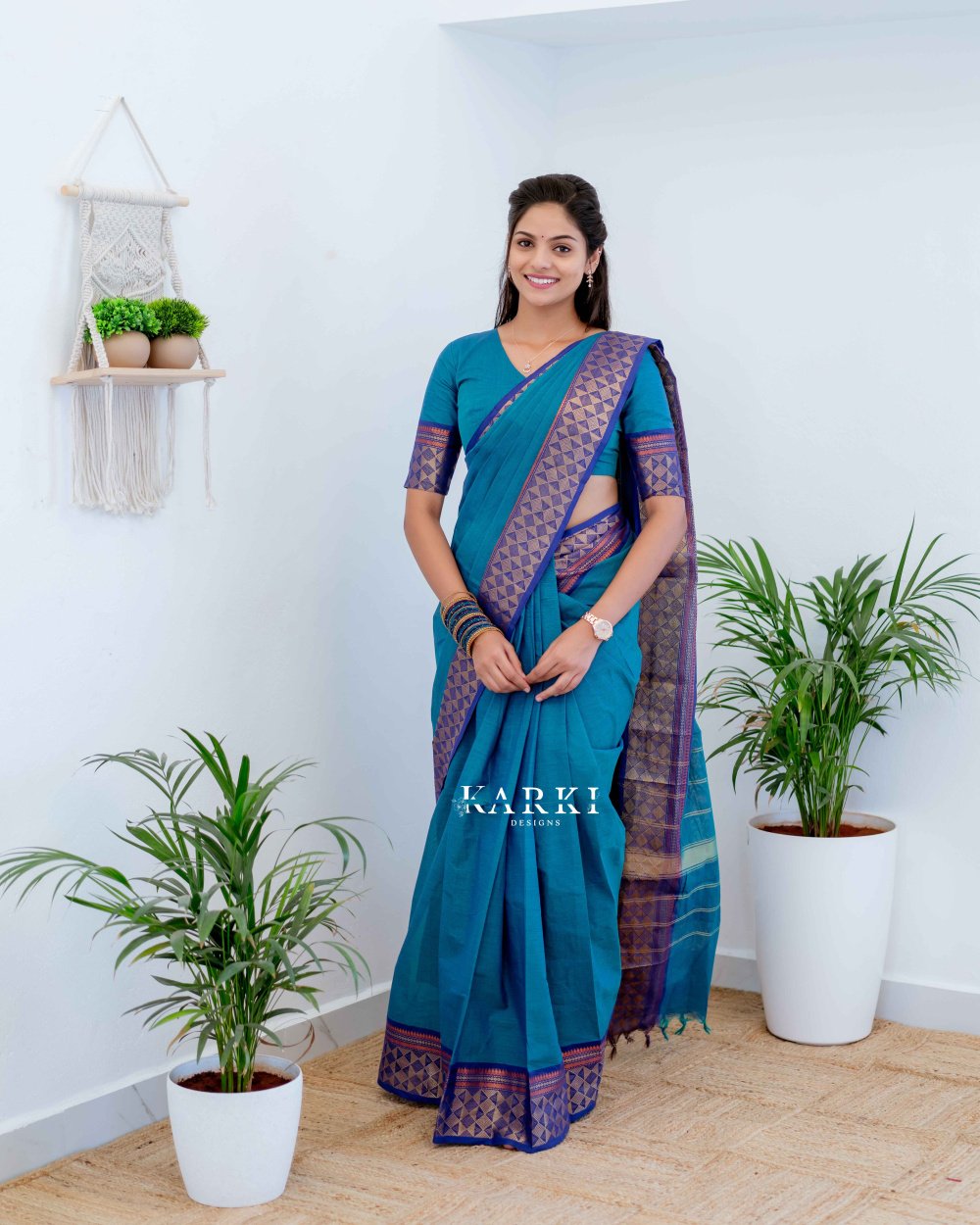 Peacock Blue Kanchi Cotton Sareee -SKN -10