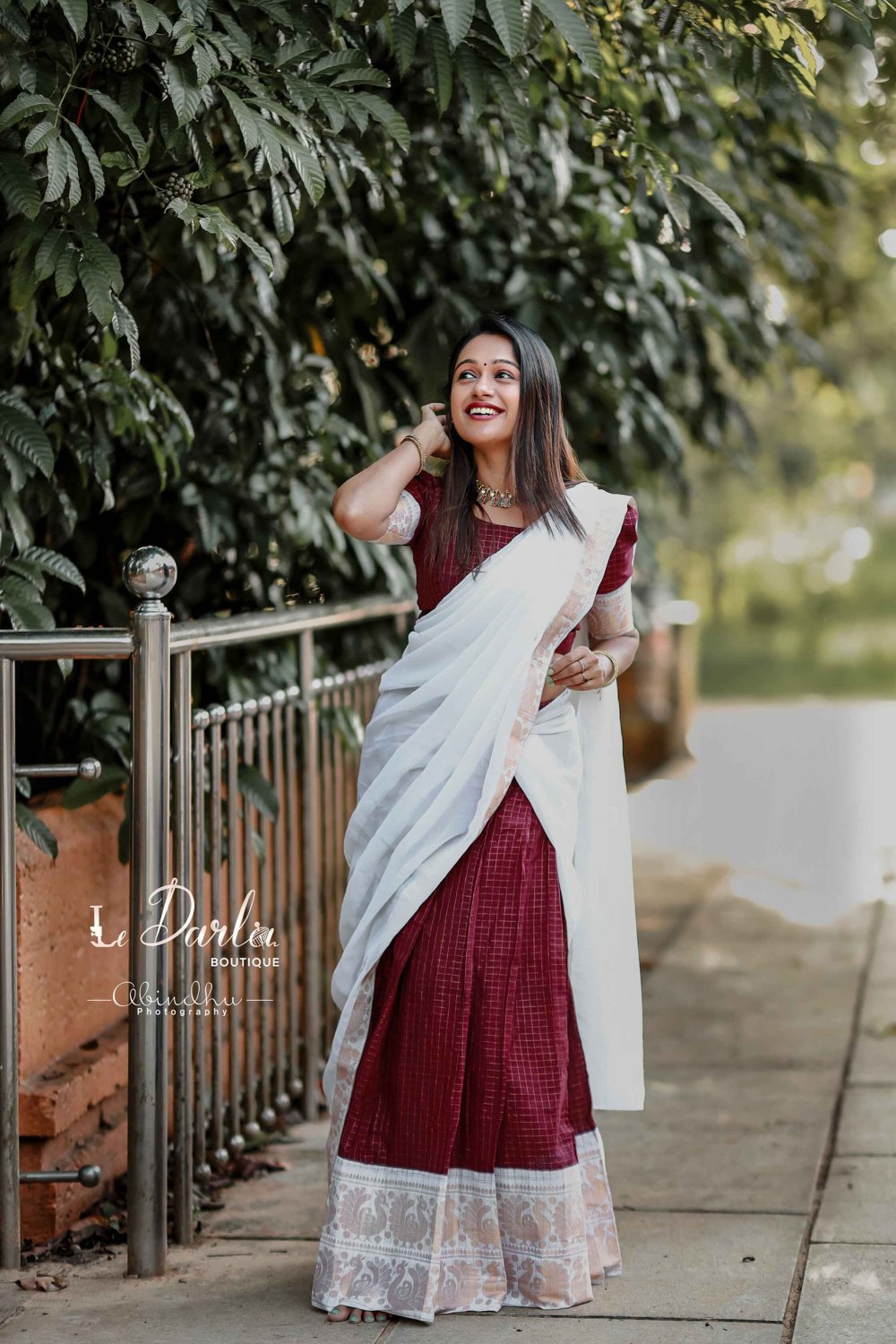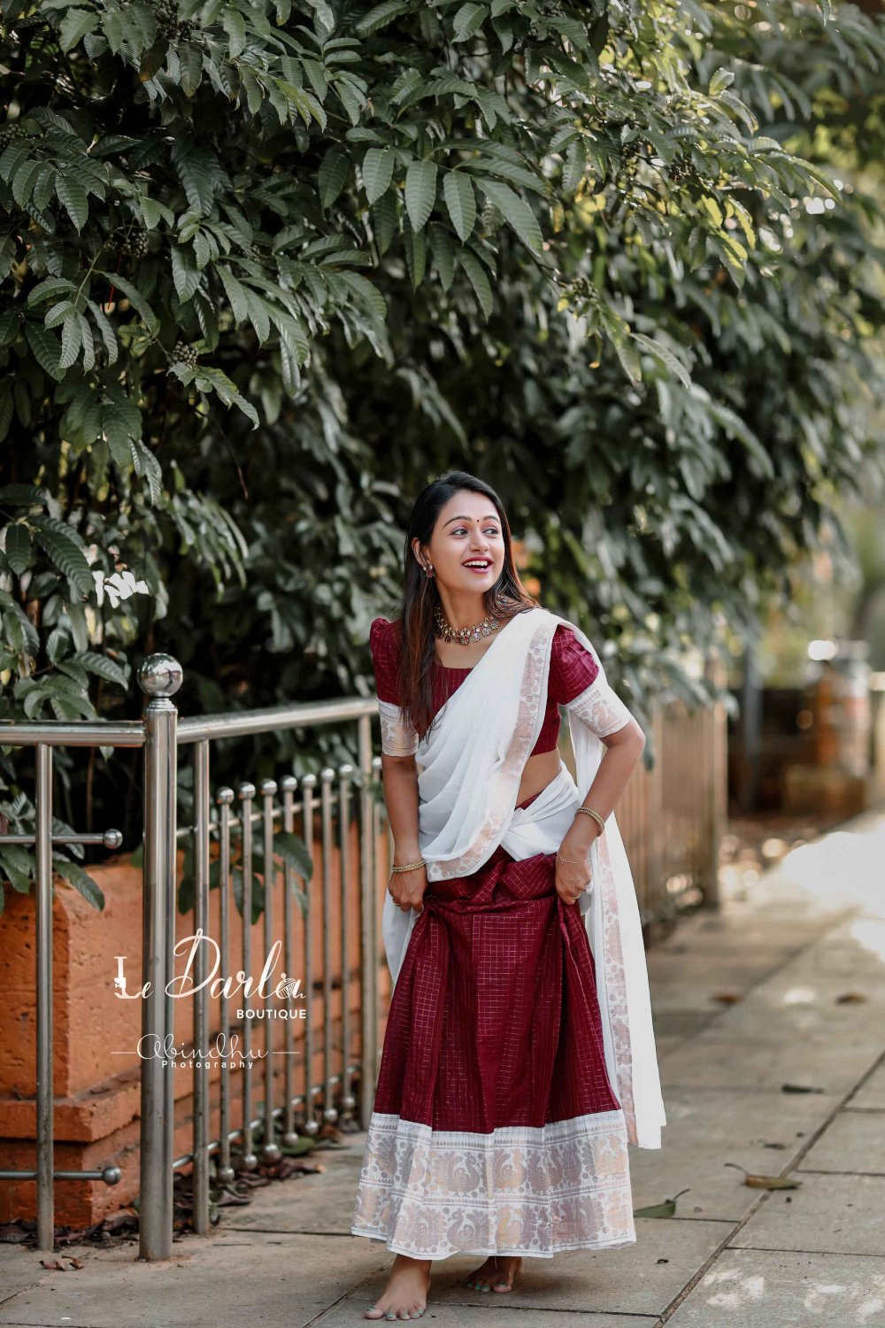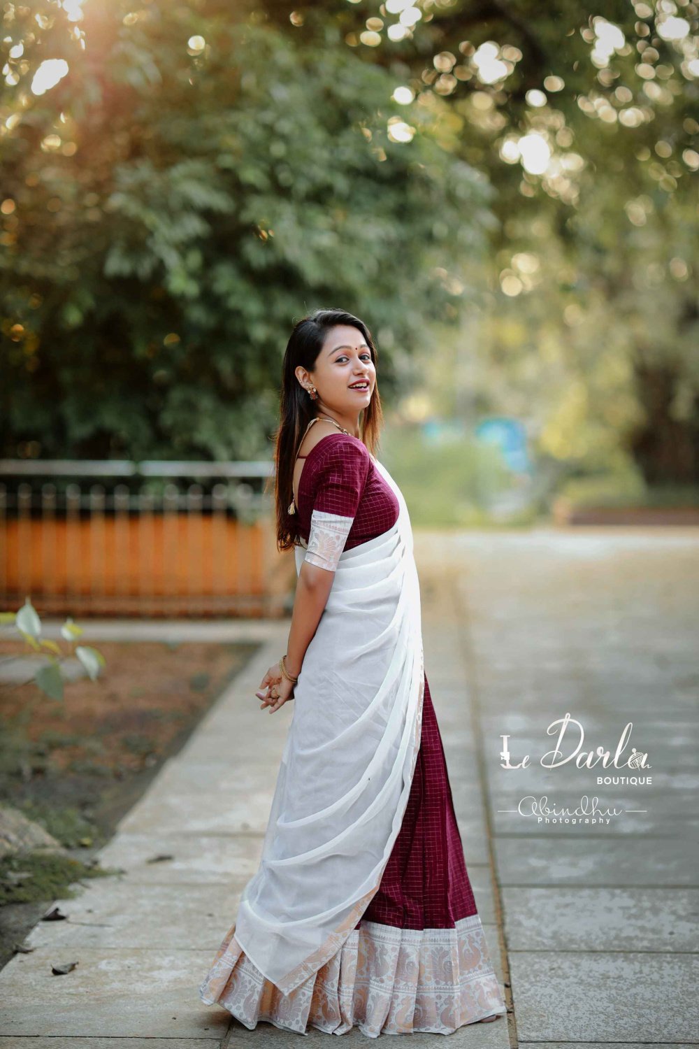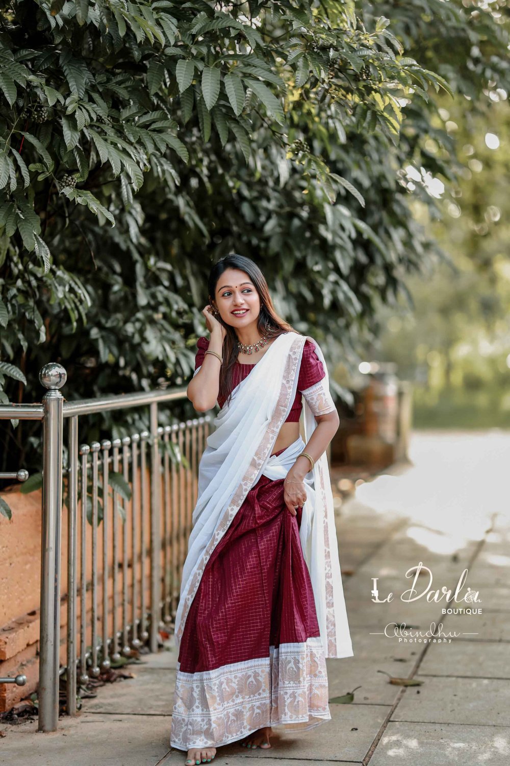 Sungudi Halfsaree - Coffee brown & White -HSSU-7