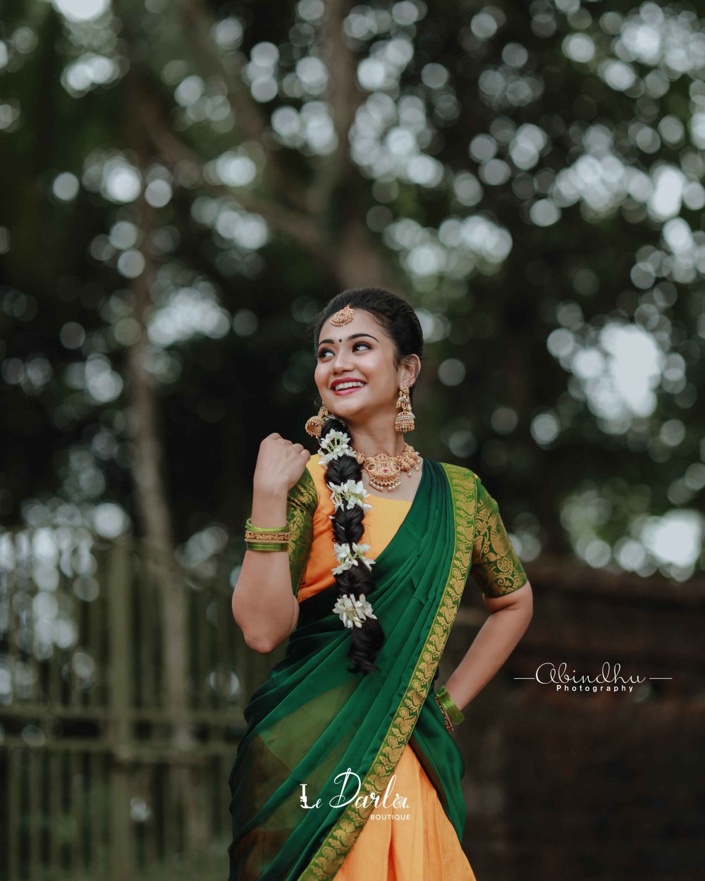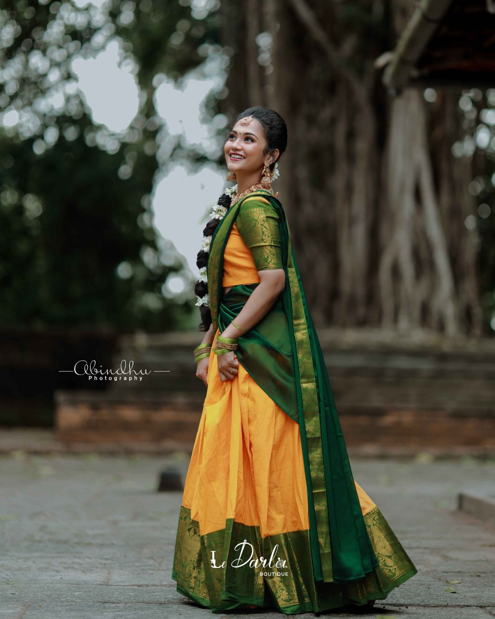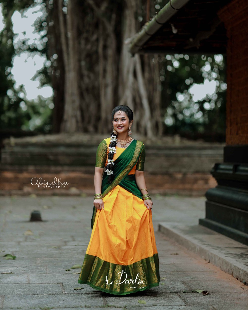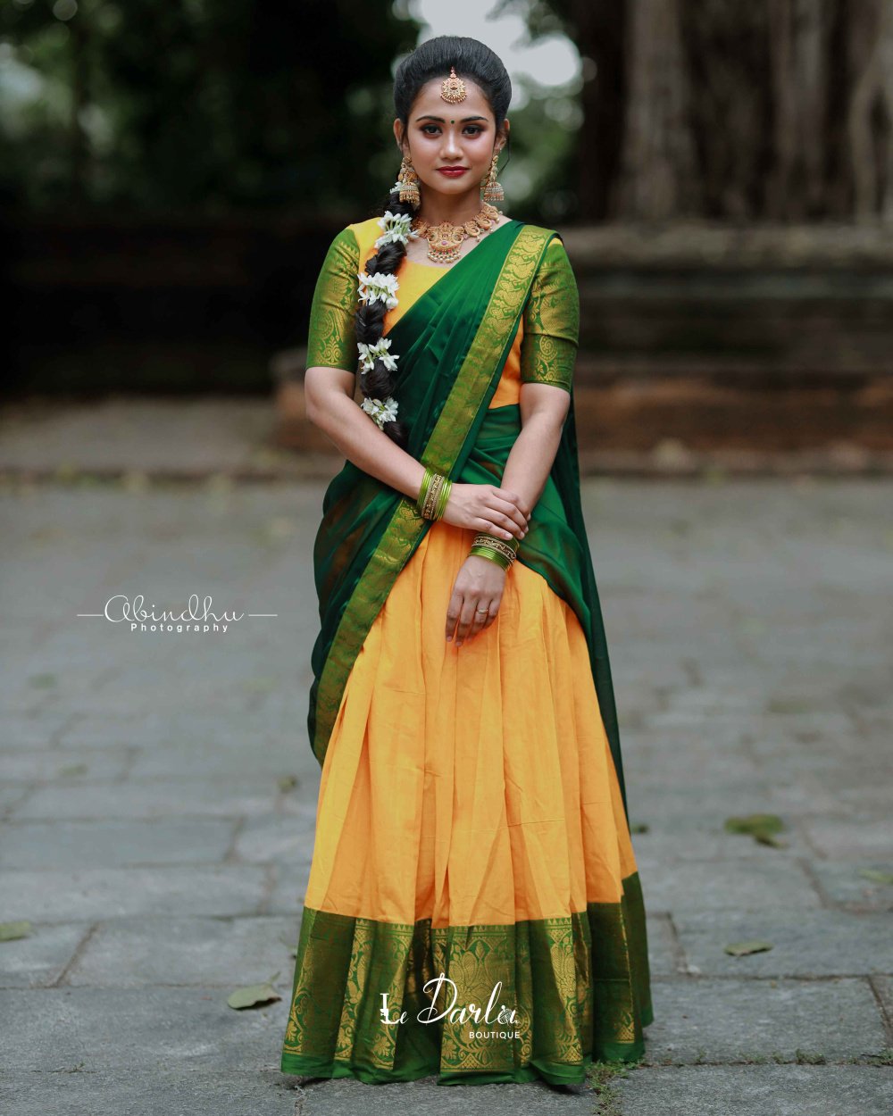 Sungudi Halfsaree - Yellow with Green - HSSU -8