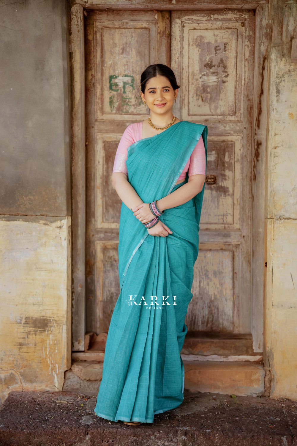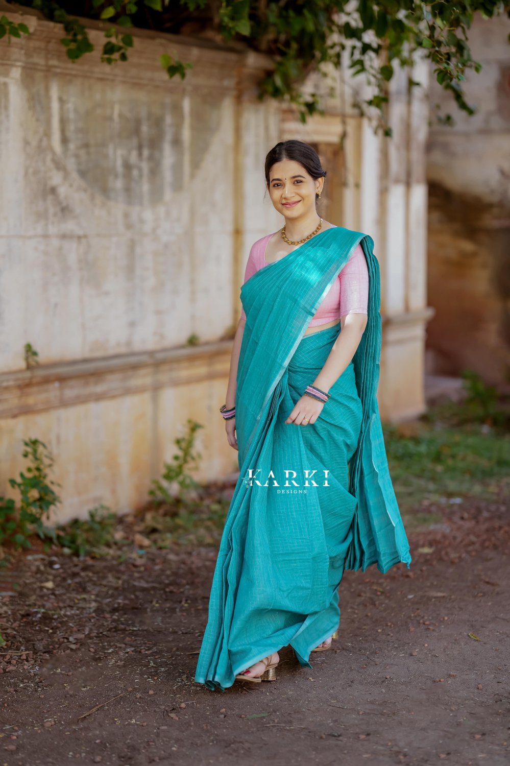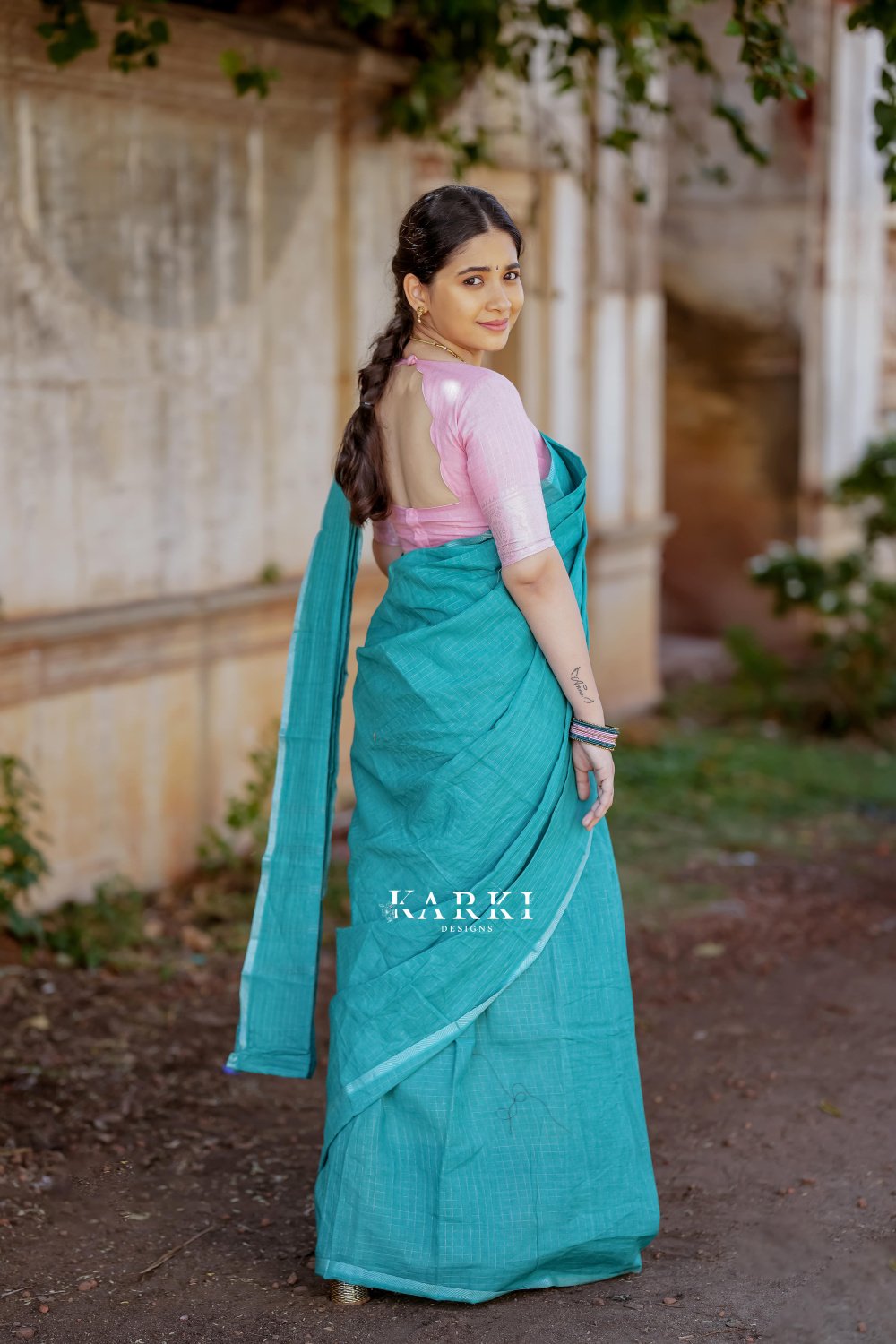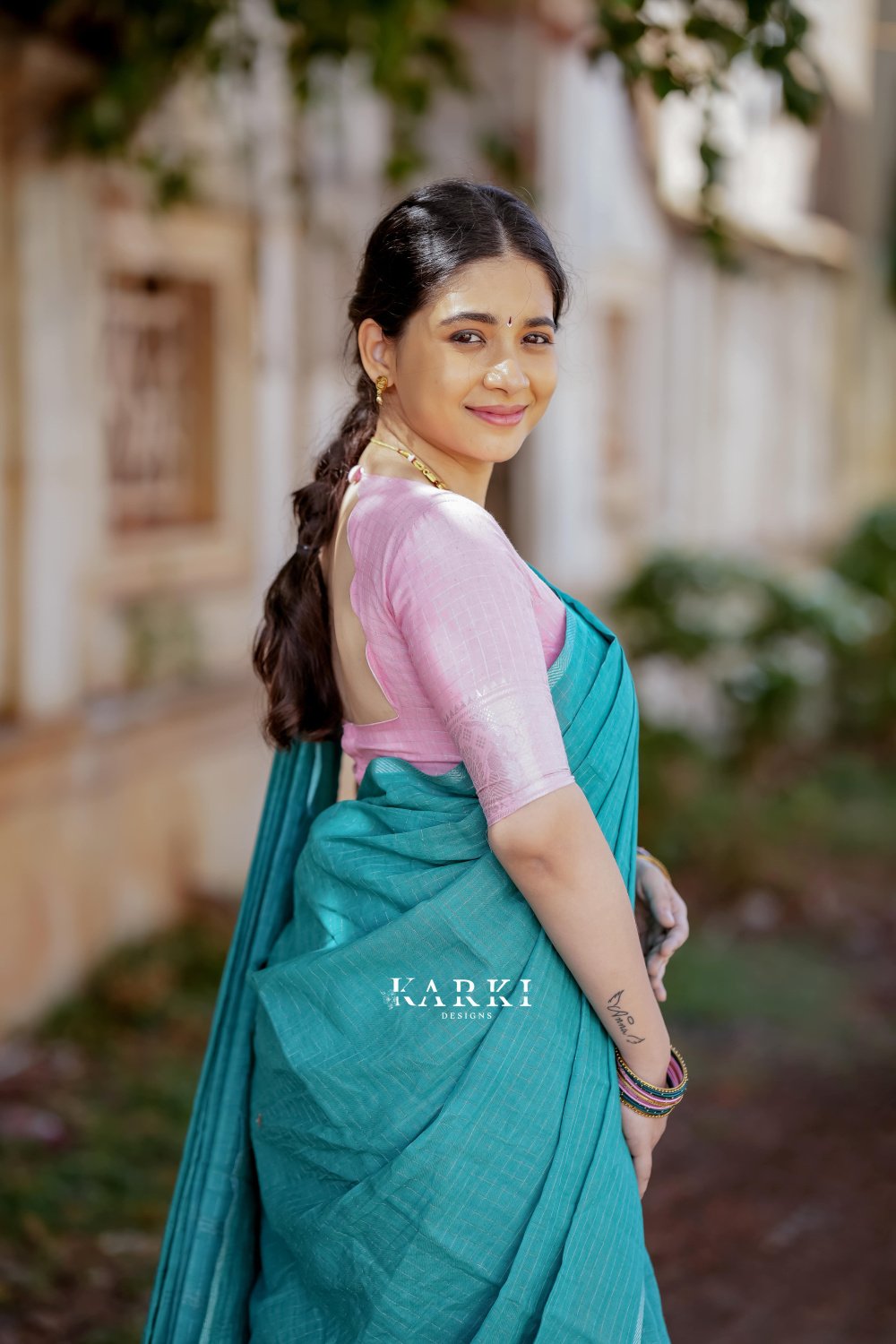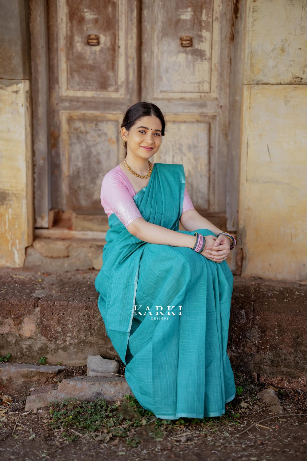 Sungudi Saree -Turquoise & Babypink - SSU3