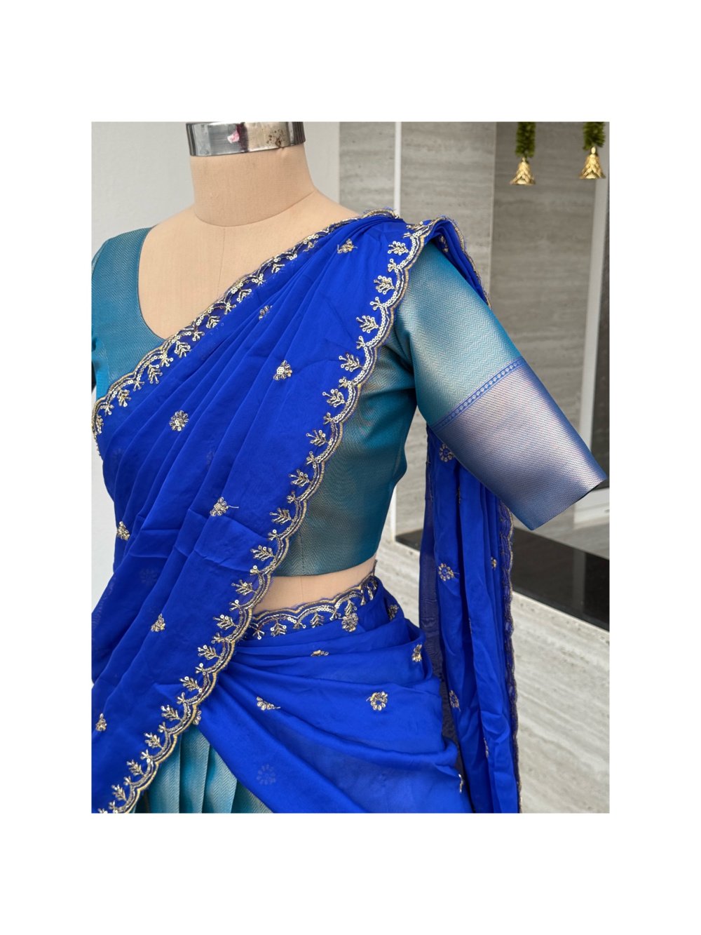 Shawl: Designer Shawl - 2.5m with 2 Side Maggam work Scallop Borders