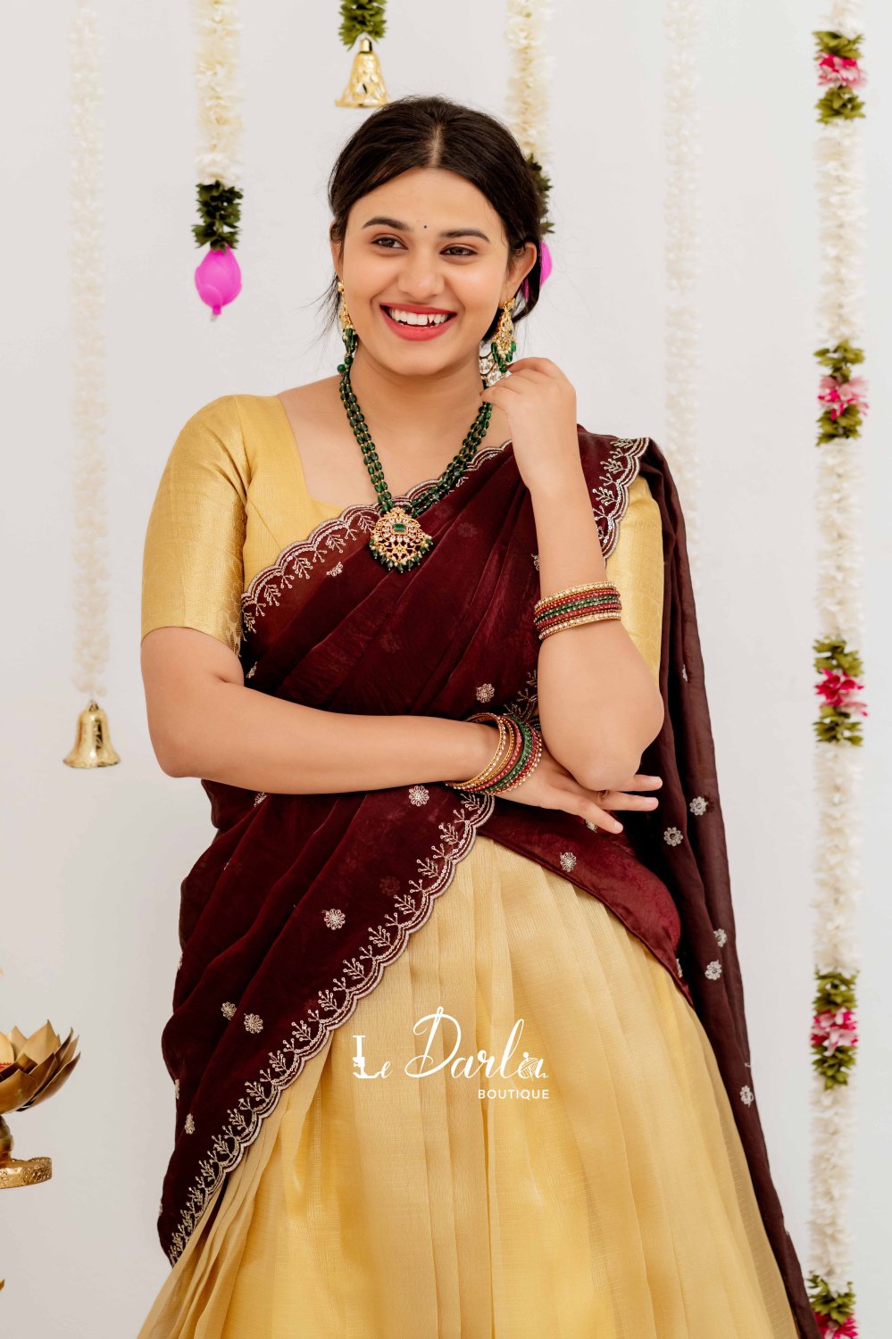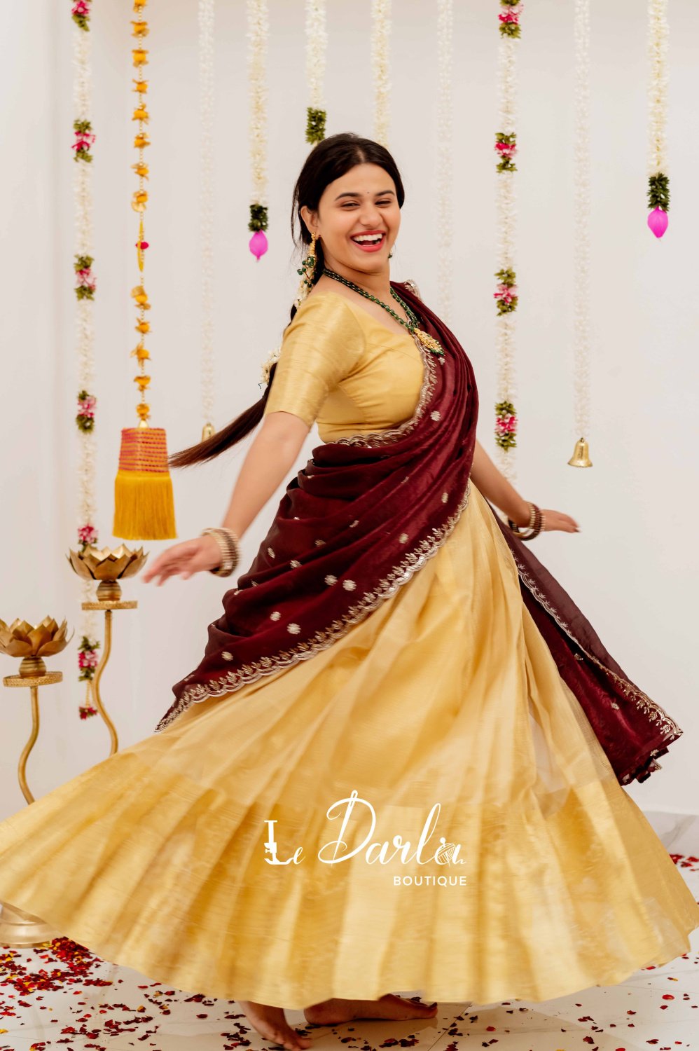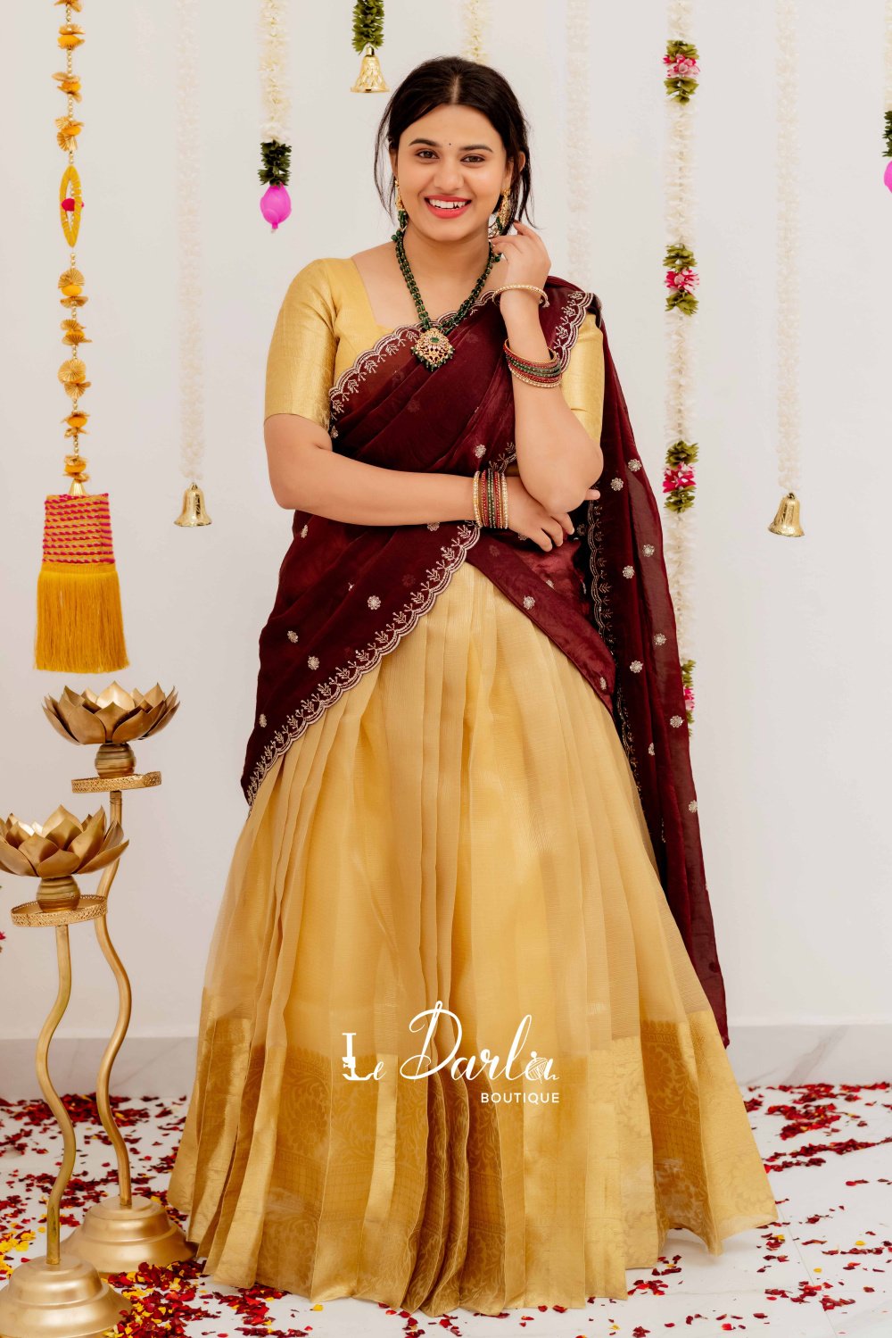 Tissue HalfSaree - Gold & Maroon - THS-2
