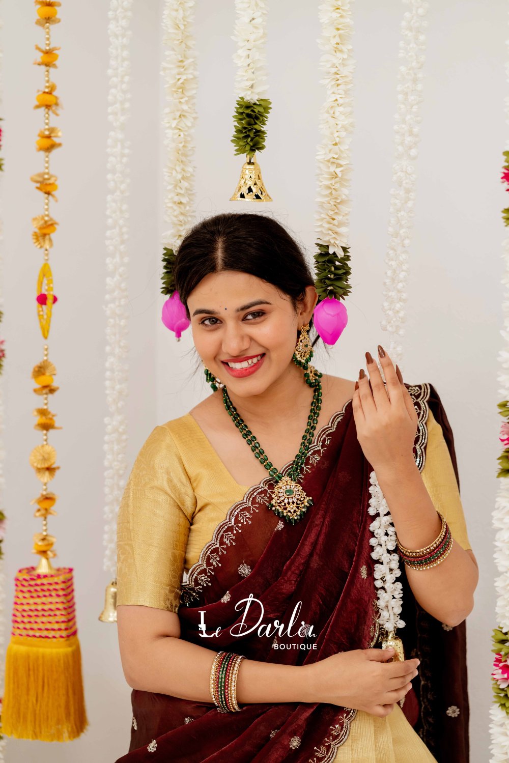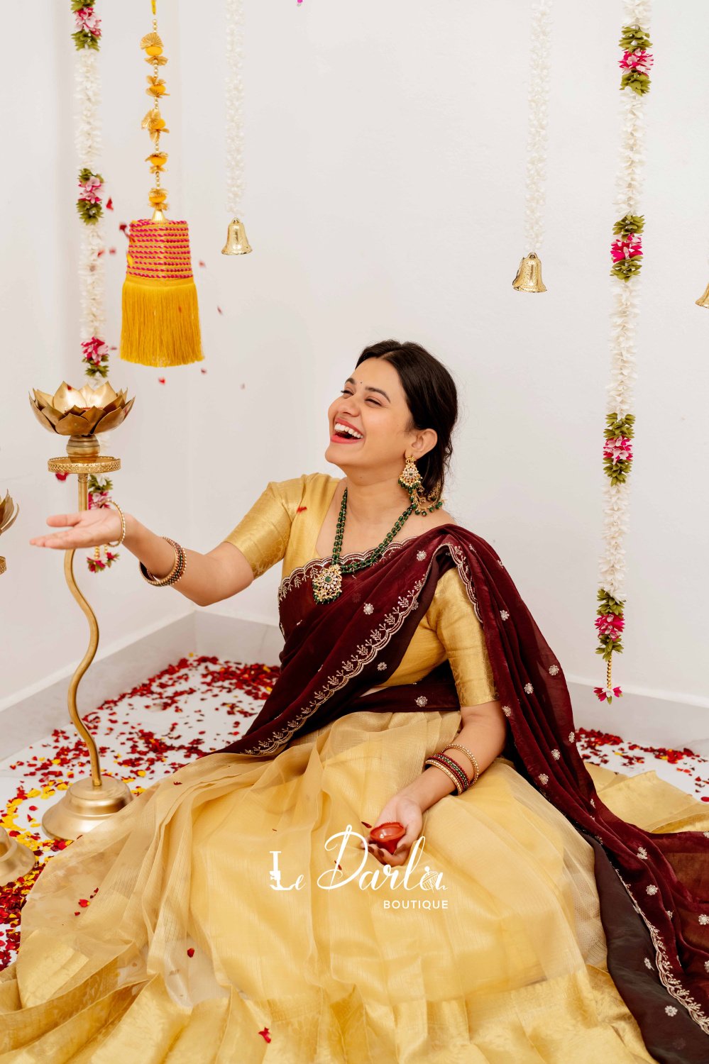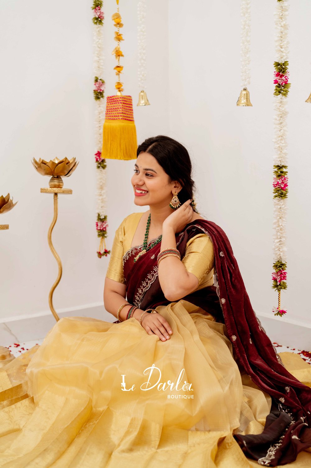 Tissue HalfSaree - Gold & Maroon - THS-2