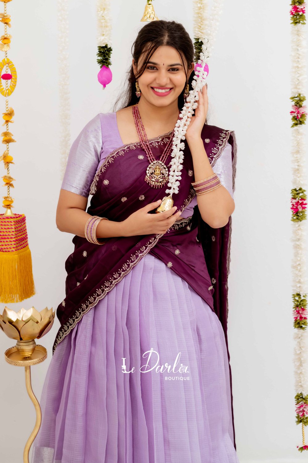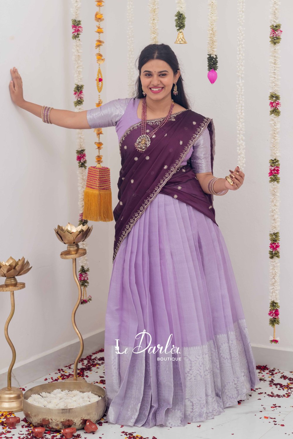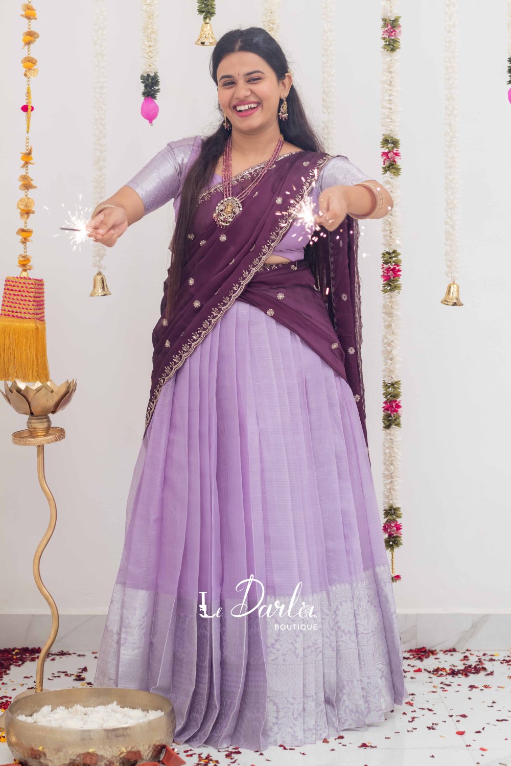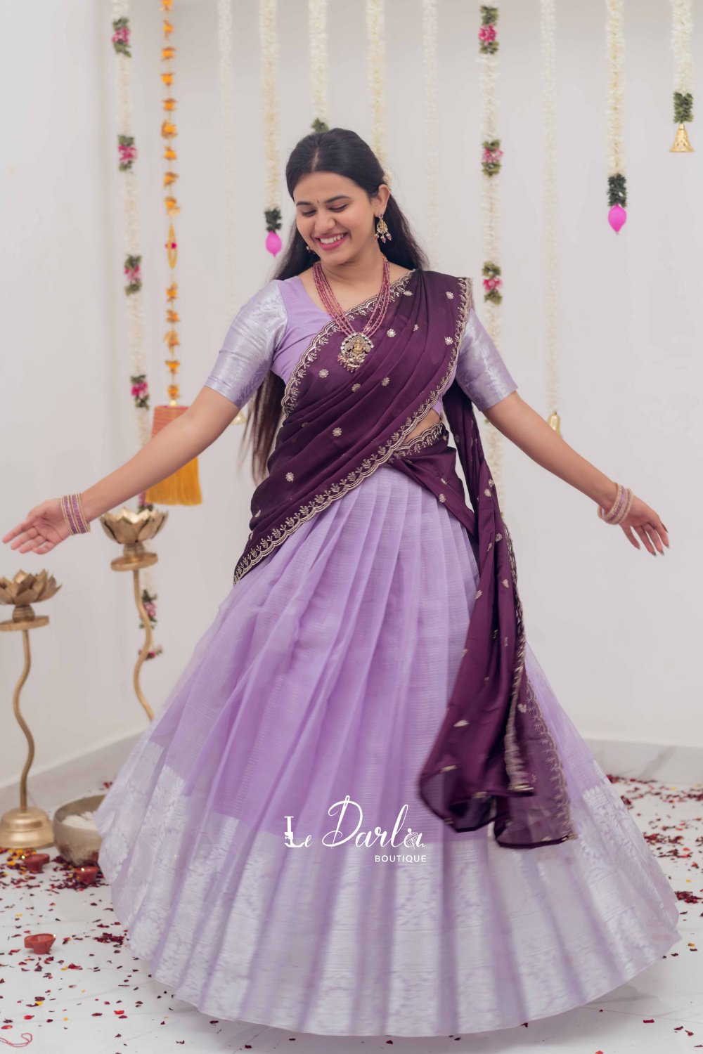 Tissue HalfSaree - Lavender & Violet - THS-4