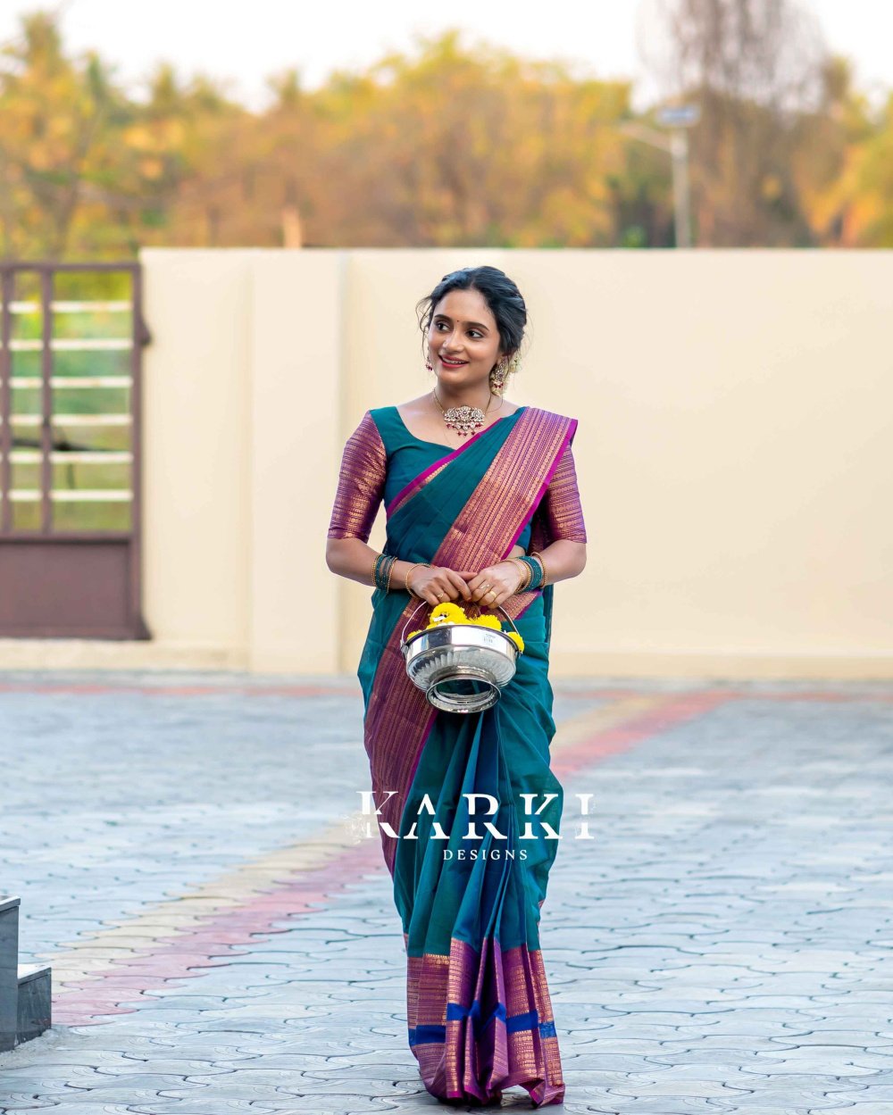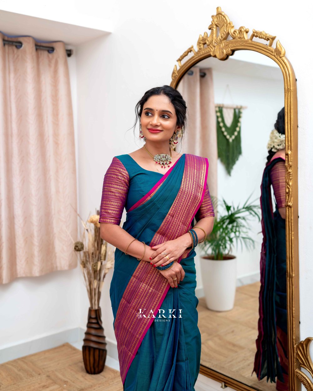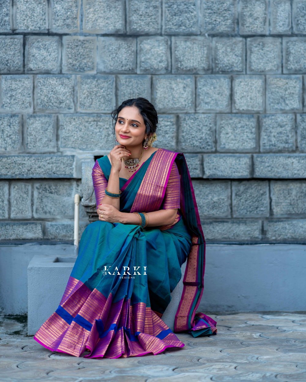Turquoise & Dark Majenta Kanchi Cotton Saree - SKN -26